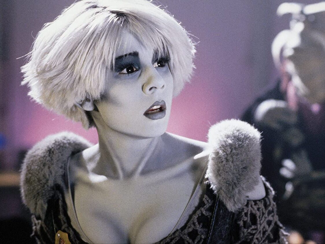 Очень красивая, восхитительная, охуенная женщина вот типа пикрил, вот такая вот, ещё и умная, и готовит хорошо. Обязательно с большими и красивыми сиськами, в хорошей физической форме, но не качок, кожа белая/светлая сквозь кожу слегка видны вены, Чёрные волосы, чёрная помада, черты литса слегка острые, цвет глаз жёлтый/оранжевый.