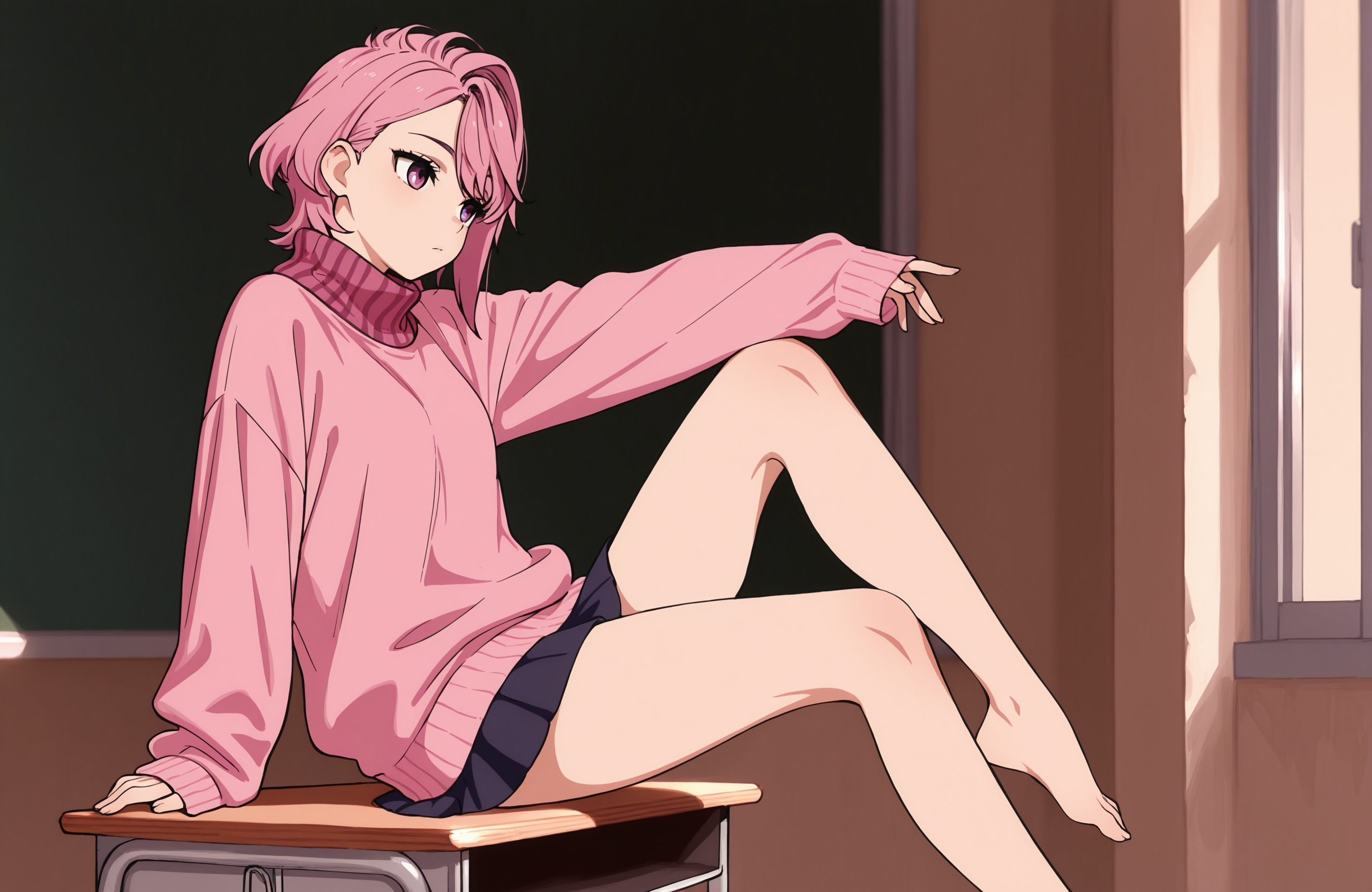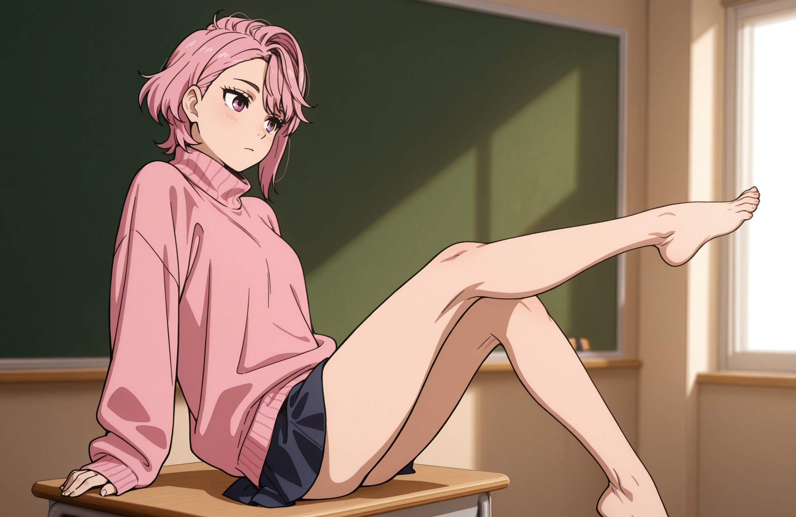 >>326815302 (OP) >>326815372 Умоляю, сделайте shiratori_aira_(dandadan) - если можно, несколько картинок с разными выражениями лица (как на всех пиках) - одета в розовый свитер с высоким горлом, мини-юбку, без трусиков, разутая - между ног нет волос - сидит на школьной парте - вытягивает одну ножку вперёд, вторая просто висит или стоит на парте - на 1 пике делает жест щелчка пальцами - на 2 пике прикрывает пизду руками в смущении - на 3 пике смущённо одной рукой трогает волосы, второй приподнимает свитер - на 4 пике руки сжимает кулачки, пизда очень течёт