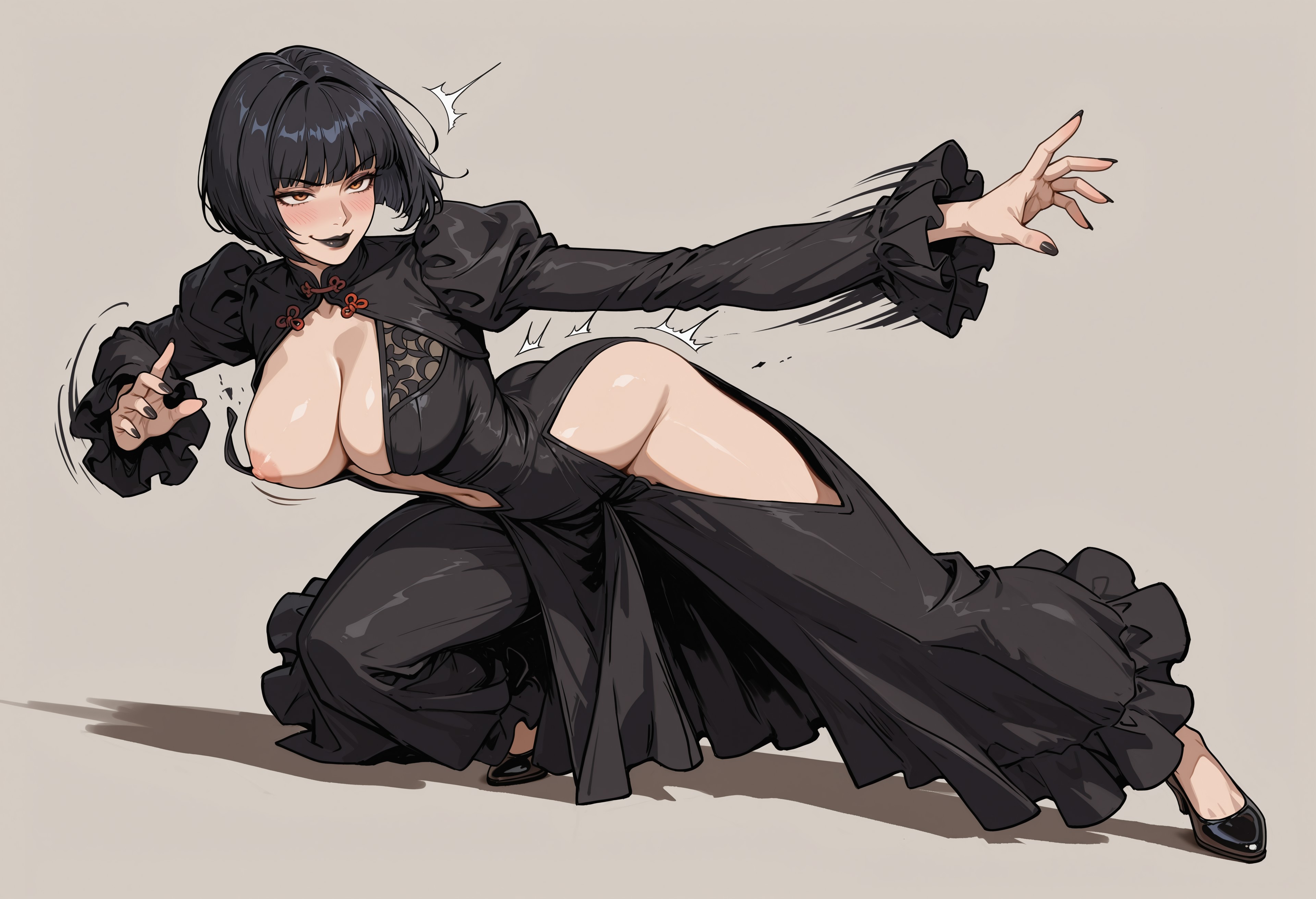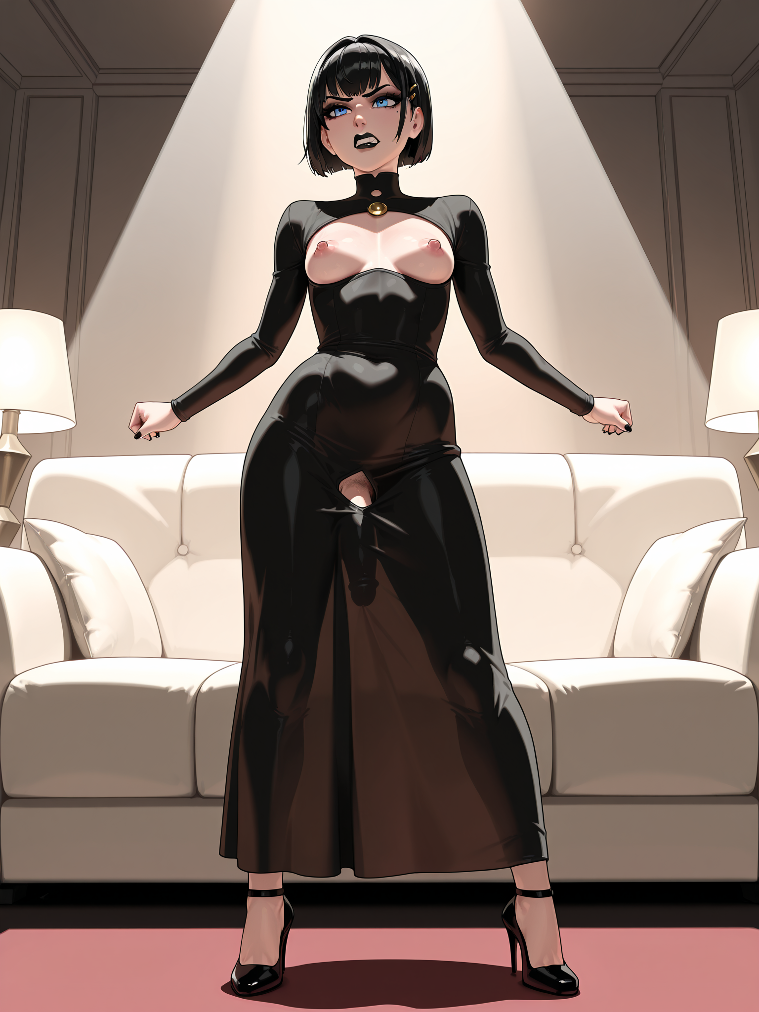>>326834589 Quality: masterpiece, high quality, absurdres, best quality, very aesthetic, newest, quality eyes, detailed eyes, detailed environment, detailed clothing, detailed clothing, detailed fabric, detailed shadows, detailed face, hair detailing, detailed hair Mavis Dracula (Hotel Transylvania) <lora:MavisDraculaV2ILLUSByJuninhoLara21:1> m4v15dr4cul4, black hair, short hair, blue eyes, makeup, black lips, lipstick, bob_cut, black nails Subject: top view, feet,Beautiful body, beautiful breasts, erect nipples, dissatisfied, arms outstretched, dissatisfied face, angry, teeth, lips, bimbo, beautiful pose, pubic stubble, High heels, breastless clothes, black dress, small breasts, tight dress (artist:jack_dempa:0.5), (artist:incase:0.75), <lora:Semi-realism_illustrious:0.5> , semi-realism, <lora:incase-ilff-v3-4:1>, breasts, <lora:The_Pit_Pony:0.7> thepit, the_pit, <lora:EnvyPonyPrettyEyes01:1> Environment:Beige sofa, camera, gray room, video camera on legs, lamp on a long stem, spotlights, spotlights, daylight, light, rays of light, dick, penis HDA_SpreadAnusXL Там чот дохуя всего на самом деле, посмотрел, как анон делает>>326833593, у него пару лор пизданул, понял, что авторов можно прописывать и будет похоже на их творчество, авторов выбрал, бимбо прописал. Ну и текстовая инверсия на позы. Пока просто прогоняю, смотрю что убавить добавить, Френю слишком много раз прогнал уже.