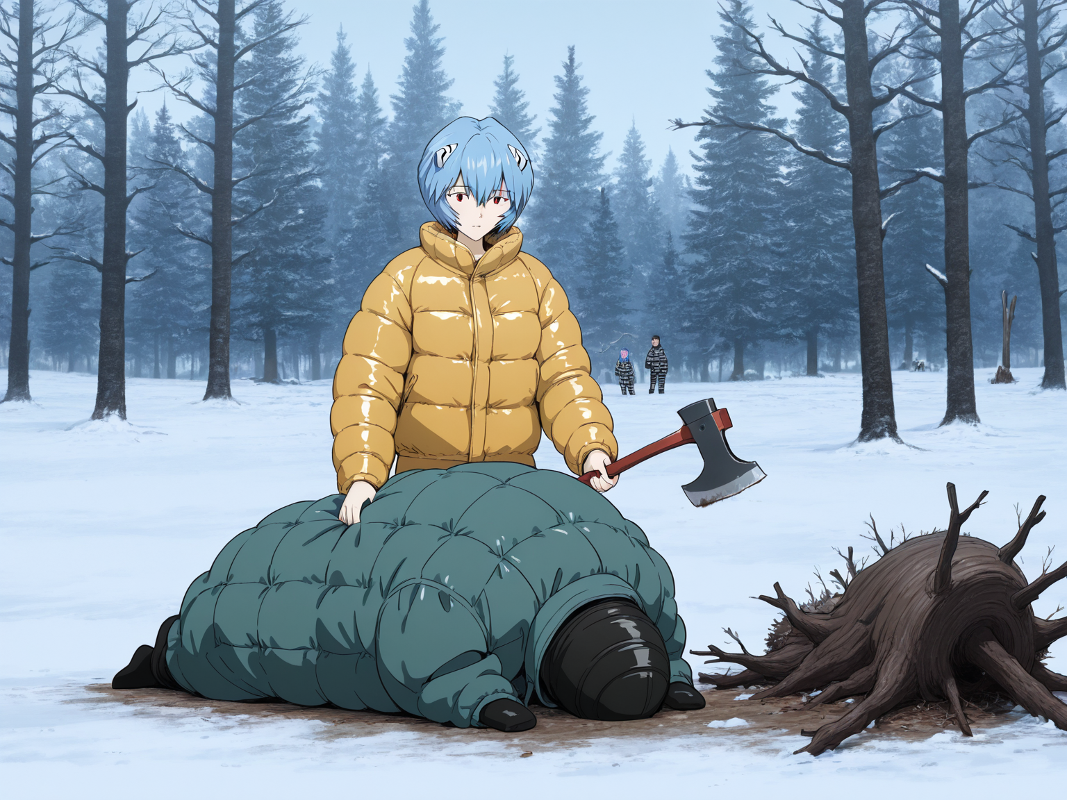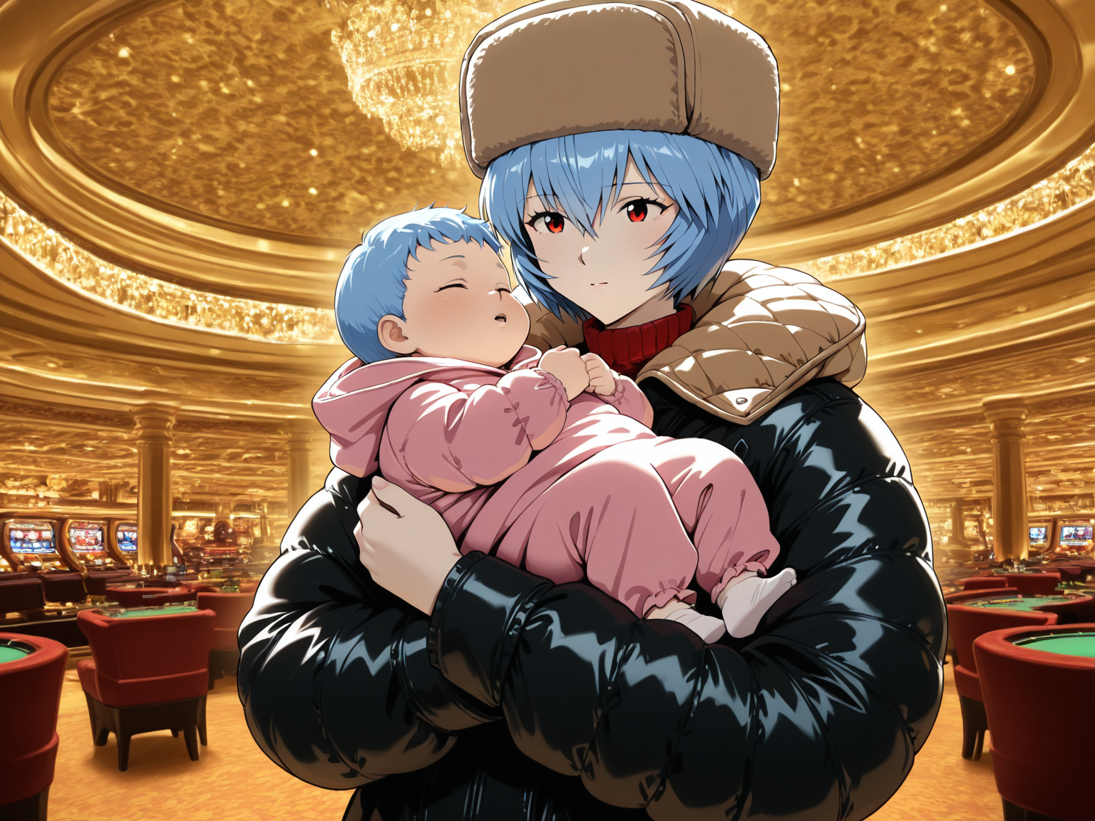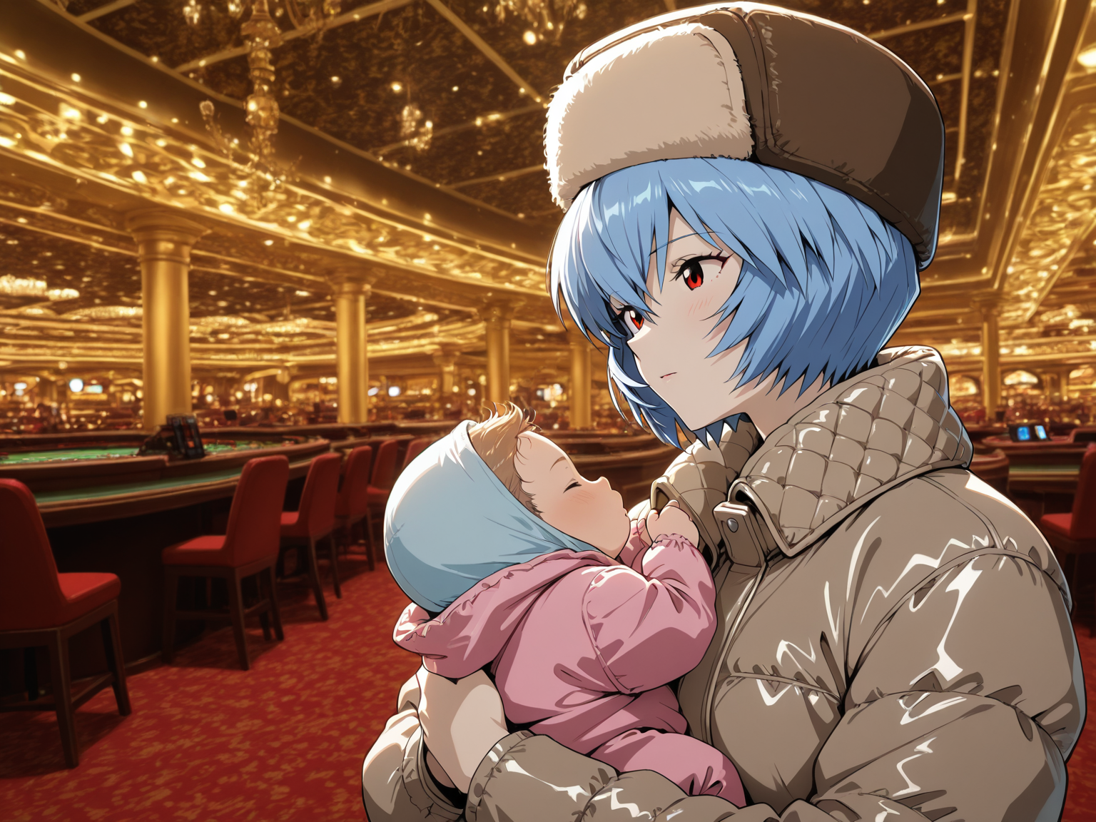 >>326831315 >>326830961 >малиновый костюм. Рей в малиновом пиджаке, водолазке, черных штанах и золотой цепью на шее и чтобы Аска подавала ей пиво тарелку с закусками в баре.