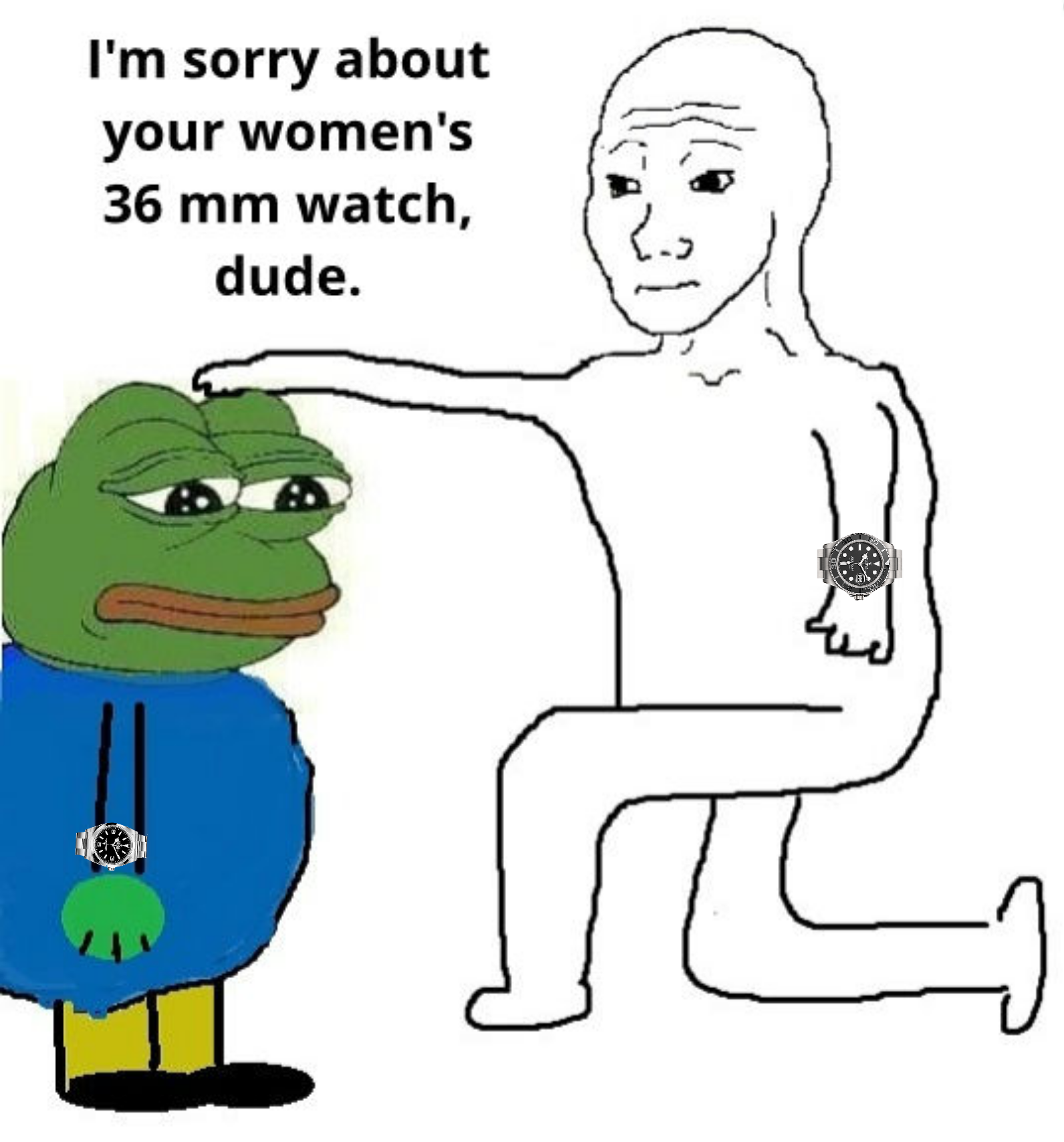 Бля, парни, а есть часы от Zewa? Или какого-то супер известного производителя туалетной бумаги. Я бы себе такие купил, чтобы этих часопетухов опускать, показывая нелепость их выебонов и водя по их ценностям. Можно даже циферблат сделать как бы из бумаги, измазанной говном.