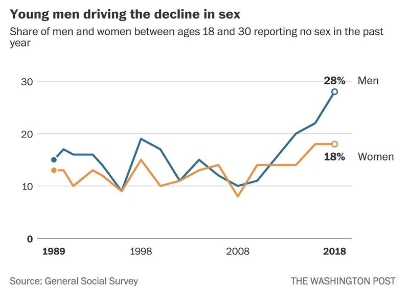Статья свежая из Науки: за 15 лет сексуальная активность среди молодых рухнула по всему миру. В США с 12% в 2010 до почти 25% в 2024 не ебались год+. В Японии половина до 25 лет вообще девственники. В Австралии, Германии, России то же самое. Причины по статье: