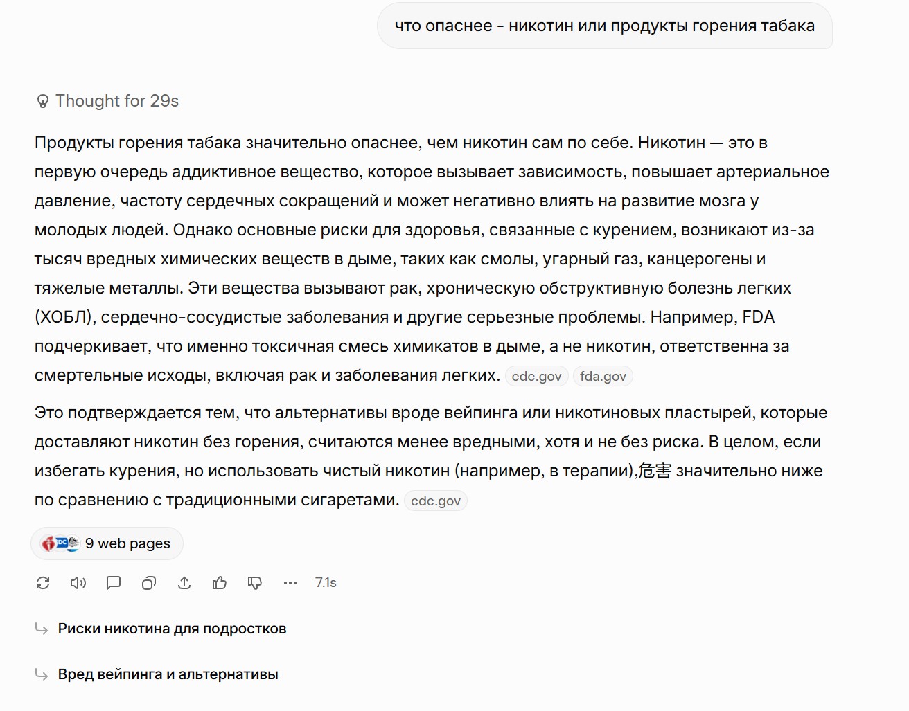 >>326861351 Суть диалога: - Никотин в целом норм, ибо "не особо опасен в разумных дозах", почти весь вред от смол. - Нет, никотин сильный наркотик и негативно влияет на сосуды/сердечно-сосудистую систему, а это основная причина смерти - Не рвись, я прав (приводит текст, где буквально написано тоже самое, что писал прошлый анон + что смолы ещё опаснее)