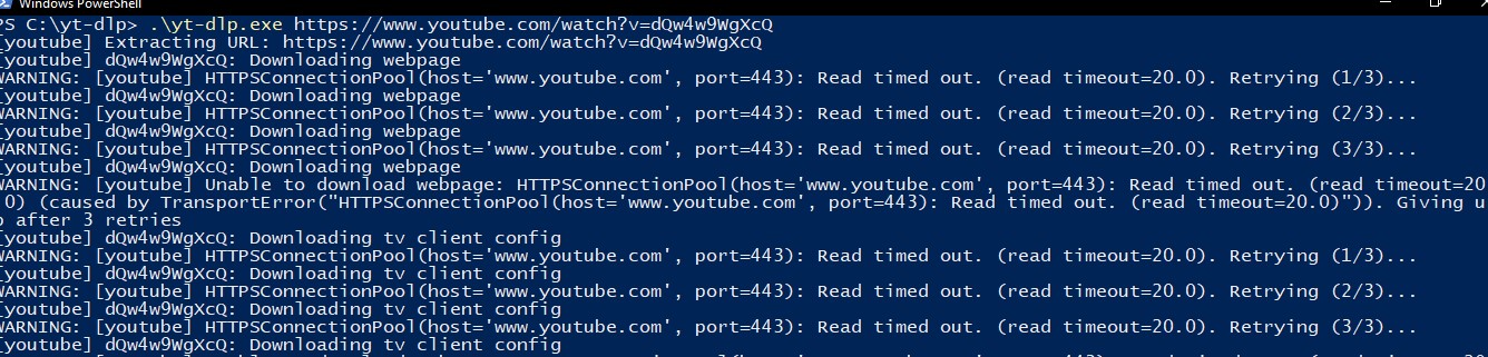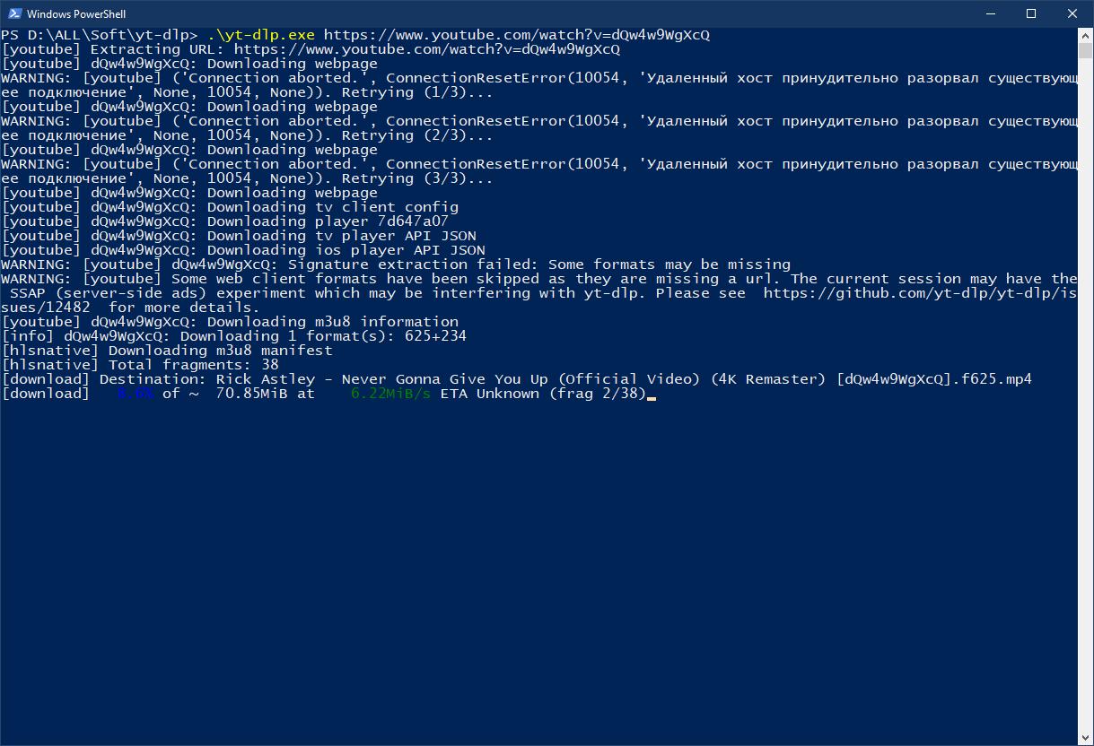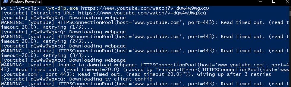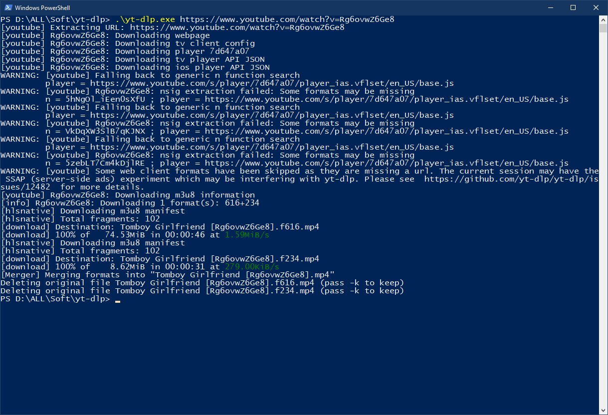 >>326938645 (OP) Аноны, скачать yt-dlp для скачивания видео с гитхаба, а он не работает. В командной сроке пишу как надо, а оно типа скачивает, а в конце ошибку выдаёт. Что делать помогите пж. Вчера ночной был, не могли мне помоч.