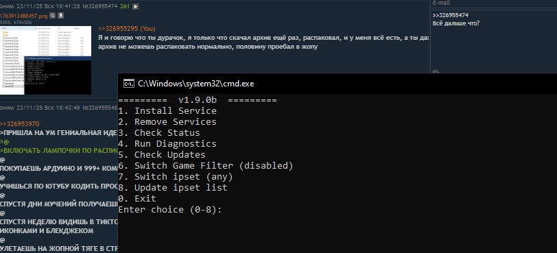>>326956155 Я это видел блядь. Я не знаю что это значит и как включить. Вот например: >Install Service - установка любой стратегии в автозапуск (services.msc) Вот что блядь, как загрузить я ебу что ли я не програмист, а: >Remove Services - удаление стратегии и WinDivert из служб Это что такое? Я ебу где этот ремув сервис и виндиверт, где сука?