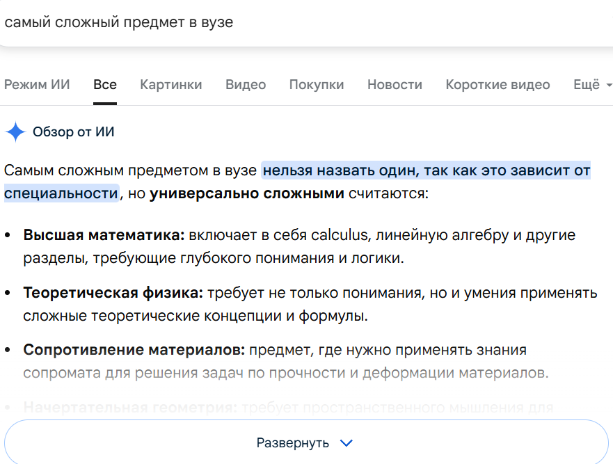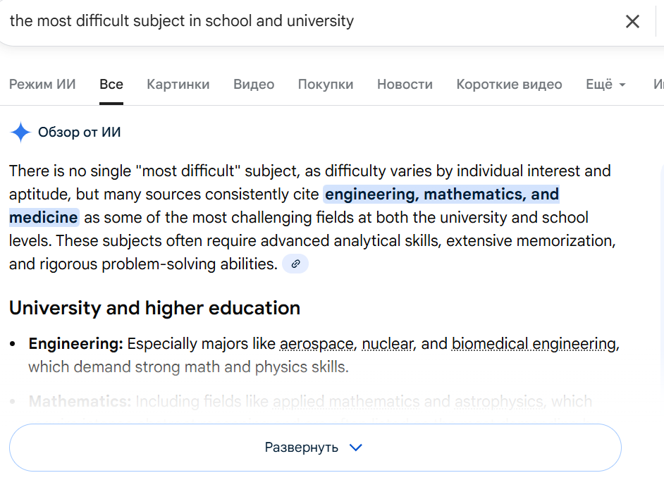 >>326956773 >С нейросетками сейчас можно получить объяснение решения и никакие репетиторы нахуй не нужны уже. Нейросеть не заменит реального человека. Да и они тоже ошибаются. >Пиздуй учить и решать всякие уравнения с 7 класса и закрой хотя бы школьную программу, хуле. Зачем? Не в этом суть треда. >Как вы ЕГЭ нахуй сдавали вообще, там же математика обязательная (ну или это у нас была, хз как теперь у пориджей). Математика разная. Есть базовая, а есть профиль.