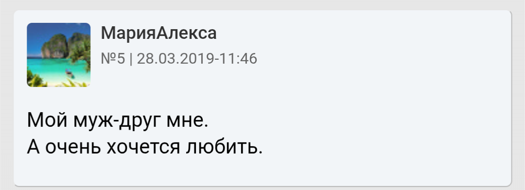 Кстати, вспомнил кое-что. У моей тянки развелись родители отец-подлец нашел себе бабу помоложе и ее мамка вышла замуж за гнома. Так вот они уже 4 года живут вместе и у них вообще нет секса. С ее слов она "не может воспринимать его как мужчину", но его все устроит. Она ему готовит, убирается, а он ей отдает всю зп.