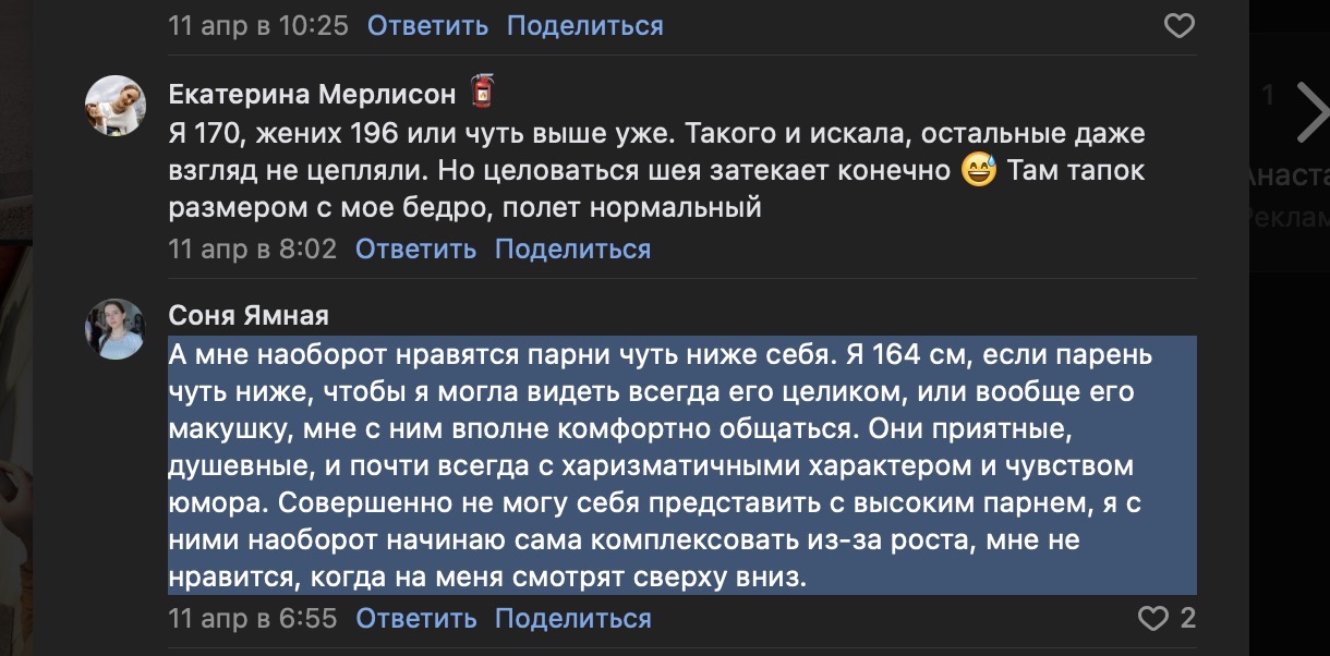 Я нихуя не понял, то есть ты был в отношениях и не чувстовал себя ценным для девушки и ты думаешь, что проблема в росте, серьезно ? Не в незрелости, не опытности, разных мировозрениях, воспитании, начитанности, а только в рост Ну да