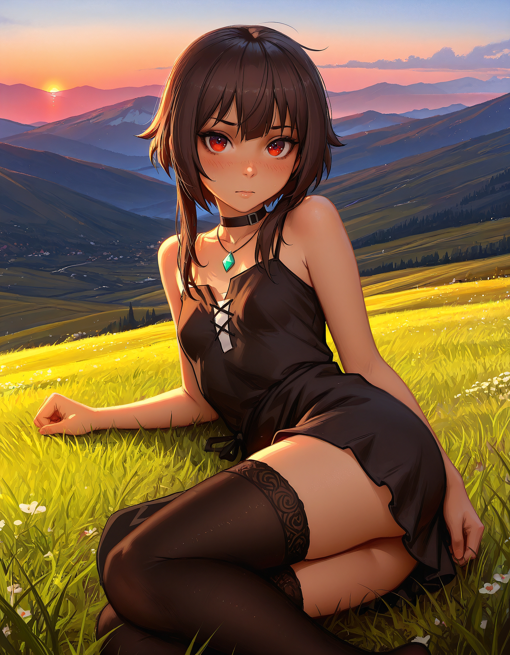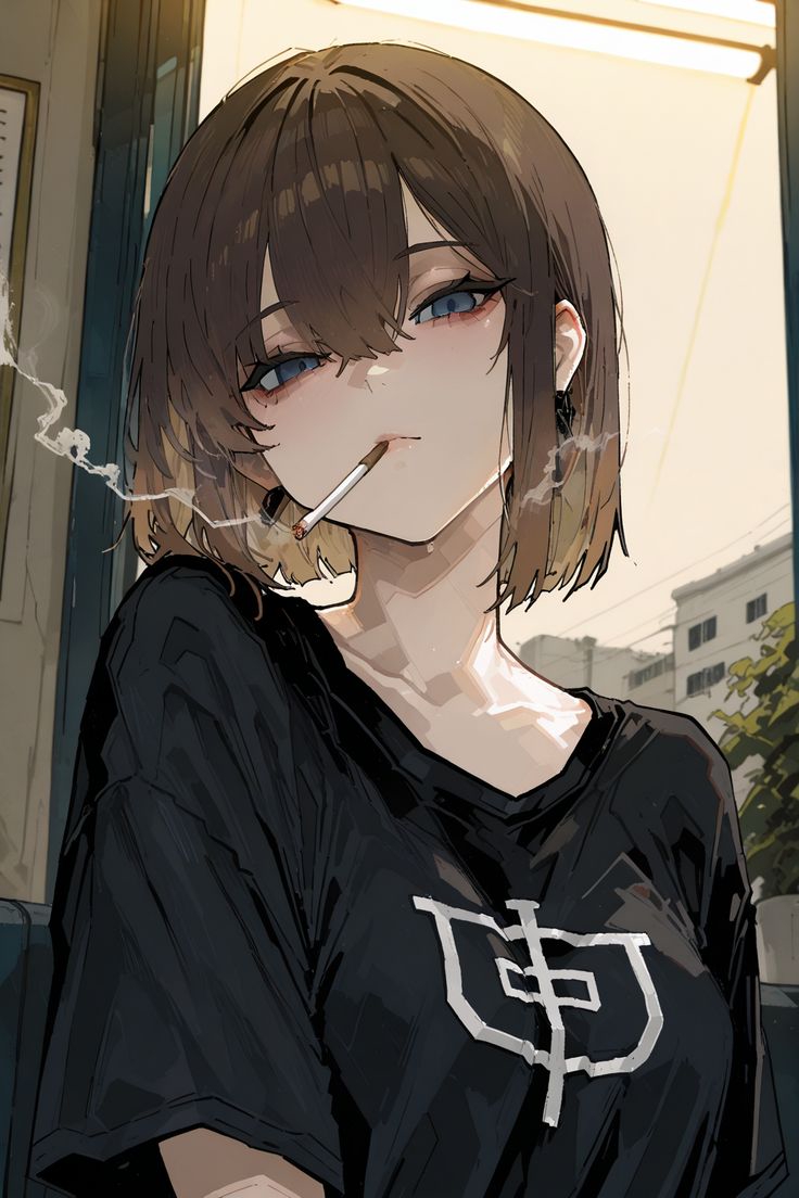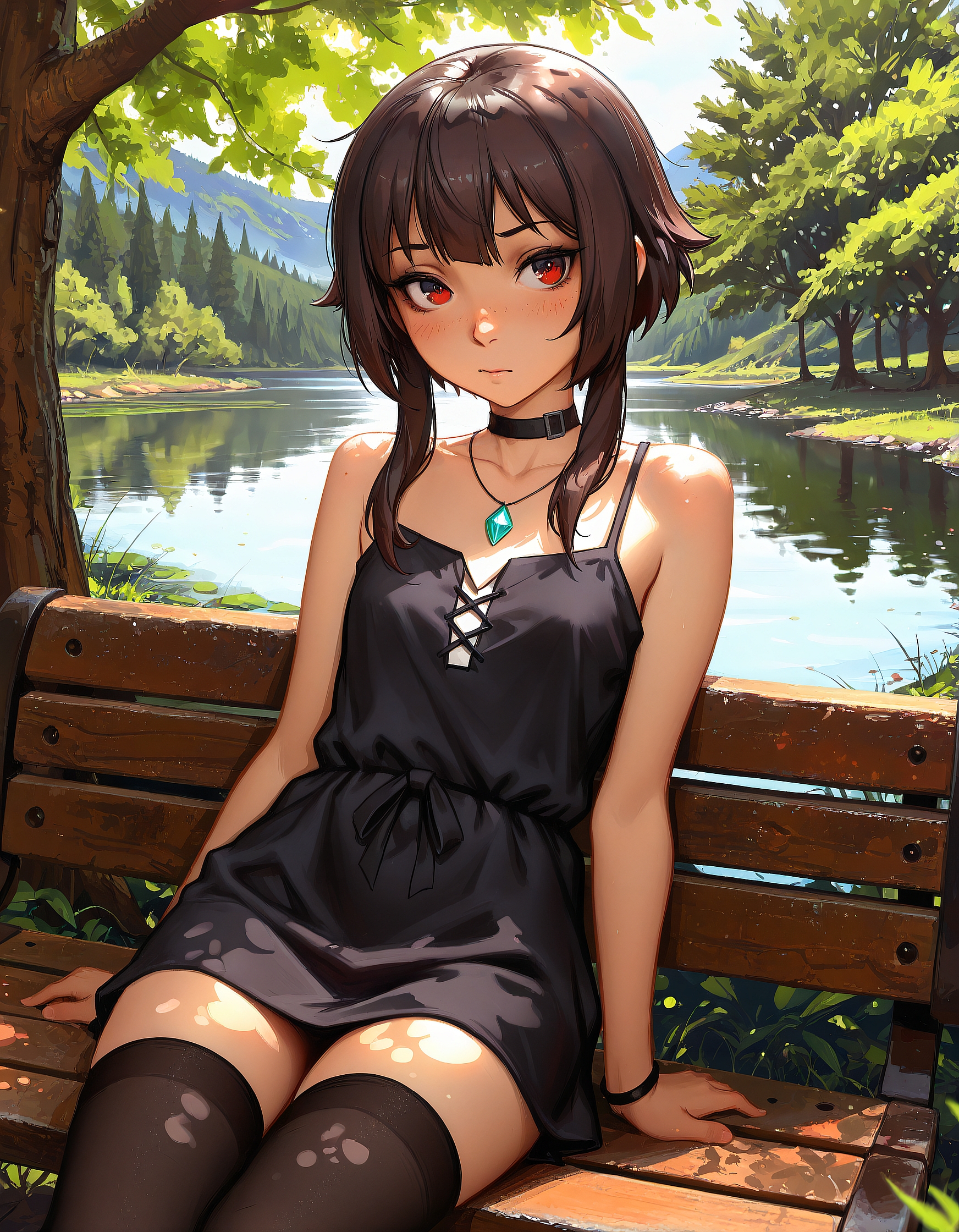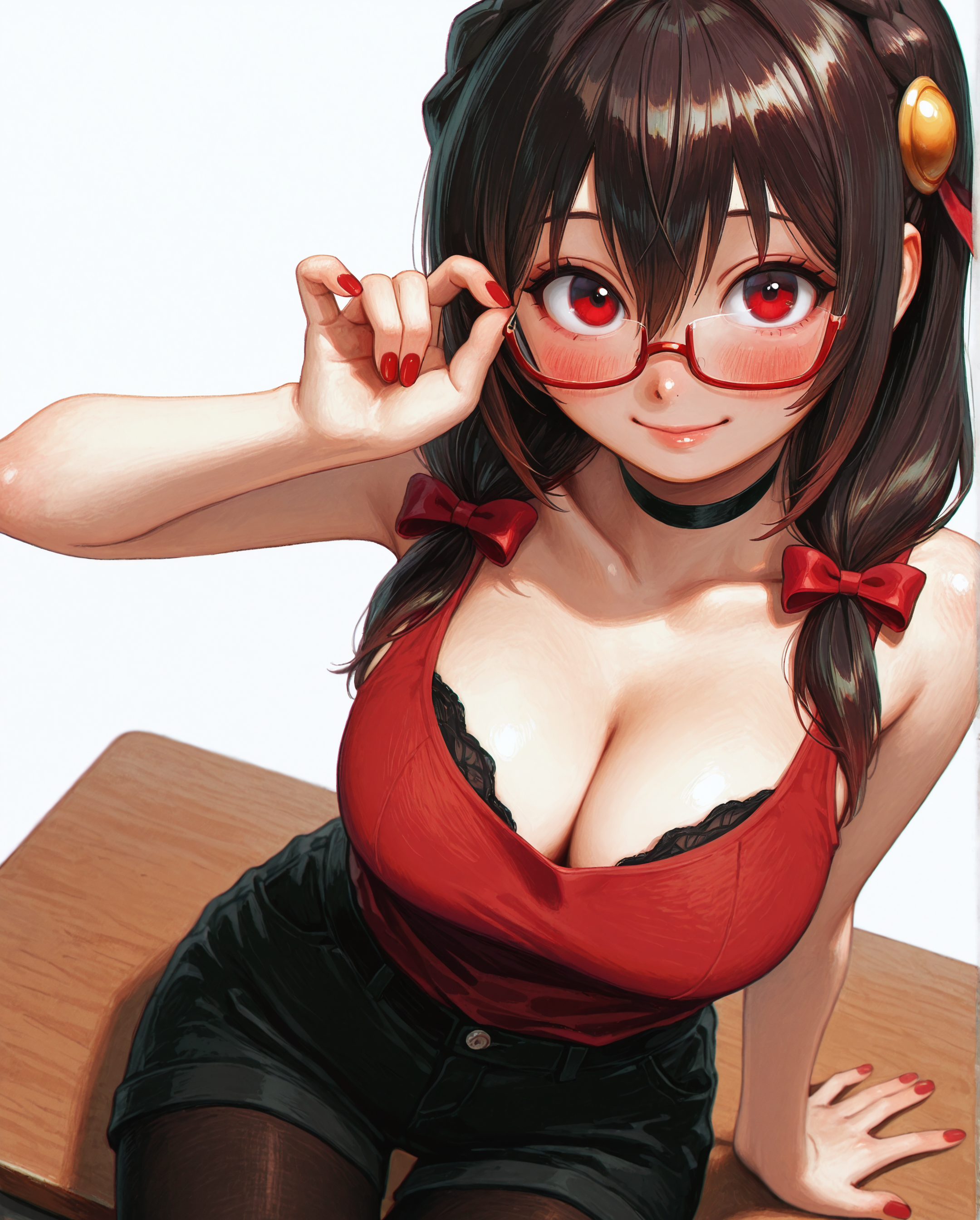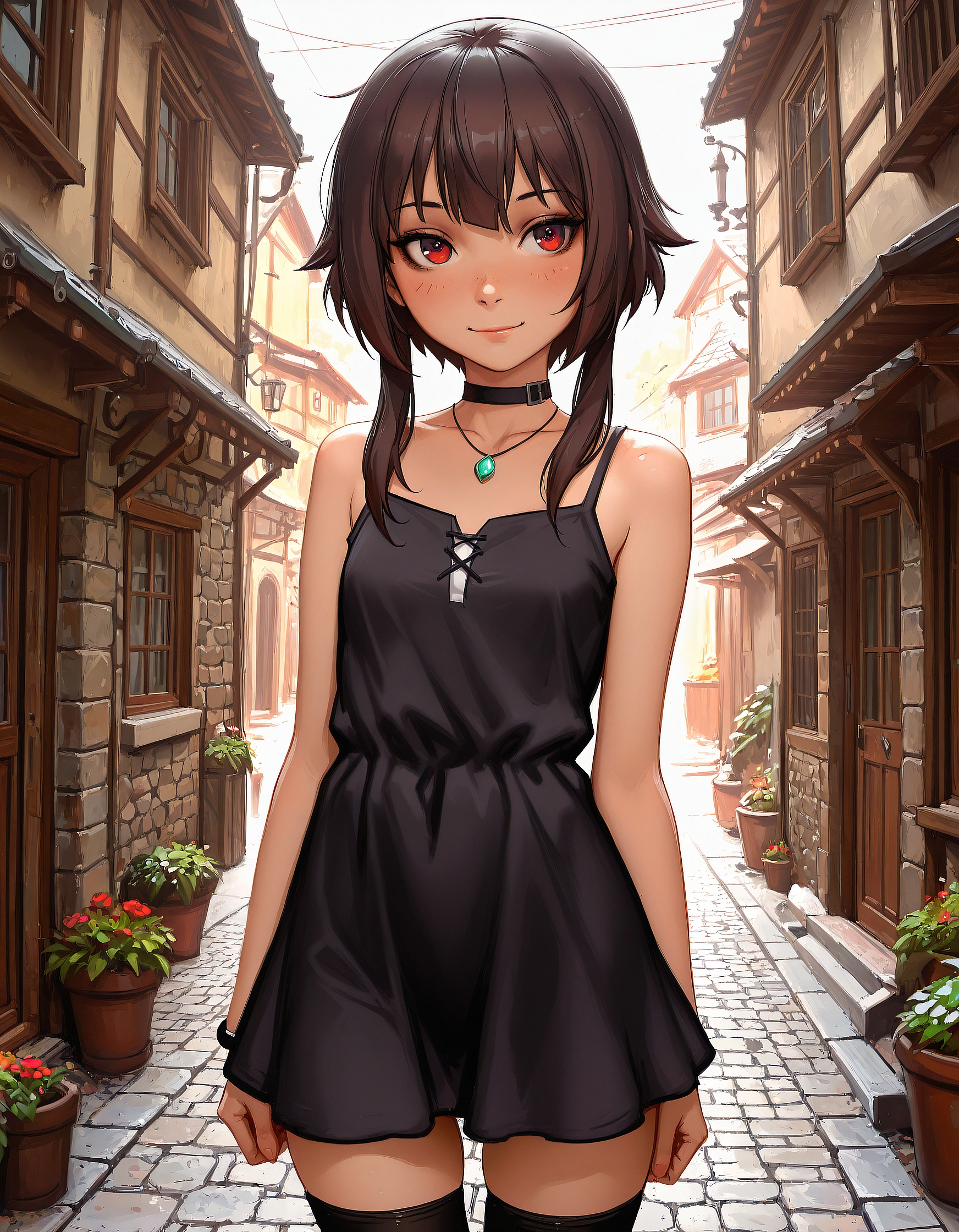 >>326985721 → tomboy, cute girl, black hair, messy hair, tan, looking at viewer, blue eyes, freckles, small breasts, fit, sligtly muscular, athletic body, perfect butt, black panties, loose black tank top, nipple peek, pensive, front view, from above, face focus, face close-up, downblouse, nipple slip, sweat, detailed background