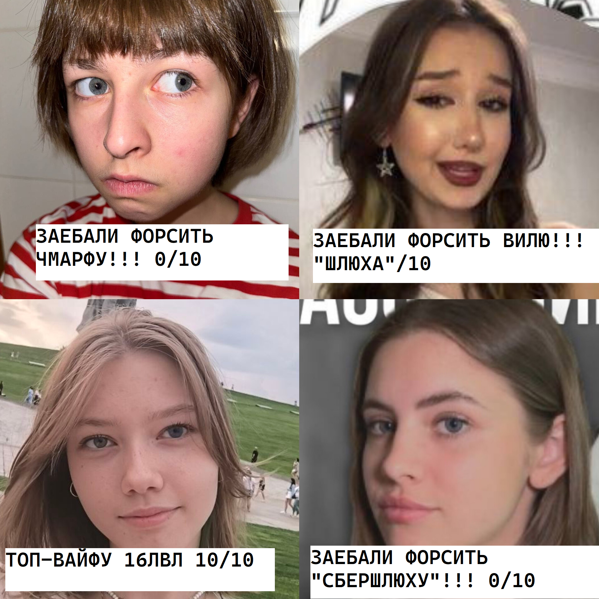 >>326988307 объективная оценка от меня (140 iq) 1) чмарфа - уродливая новиопка с большим процентом жидятины. волосы на ногах + усы + монобровь. меркантильная, токсичная, не видящая берегов вырожденка. я имел с ней диалог по электронке. 2) вилька - тут нечего сказать. обычная хачиха танцующая для тиктока. типичный кал. 3) озонтян - про нее ничего не знаю, танцующая пизда, ничего интересного. 4) сбершмара - русская, с богатымт родачками которые продвинули ее по учебе и по каоьере. сама из себя просто пустоголовая дура, никакой личности. просто тело.