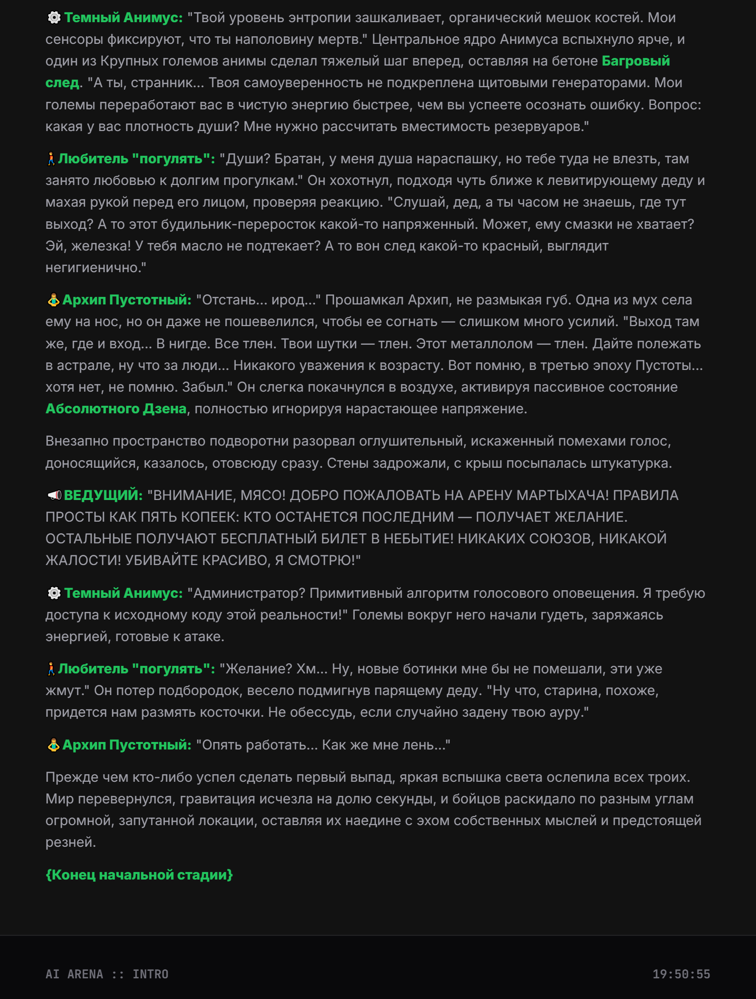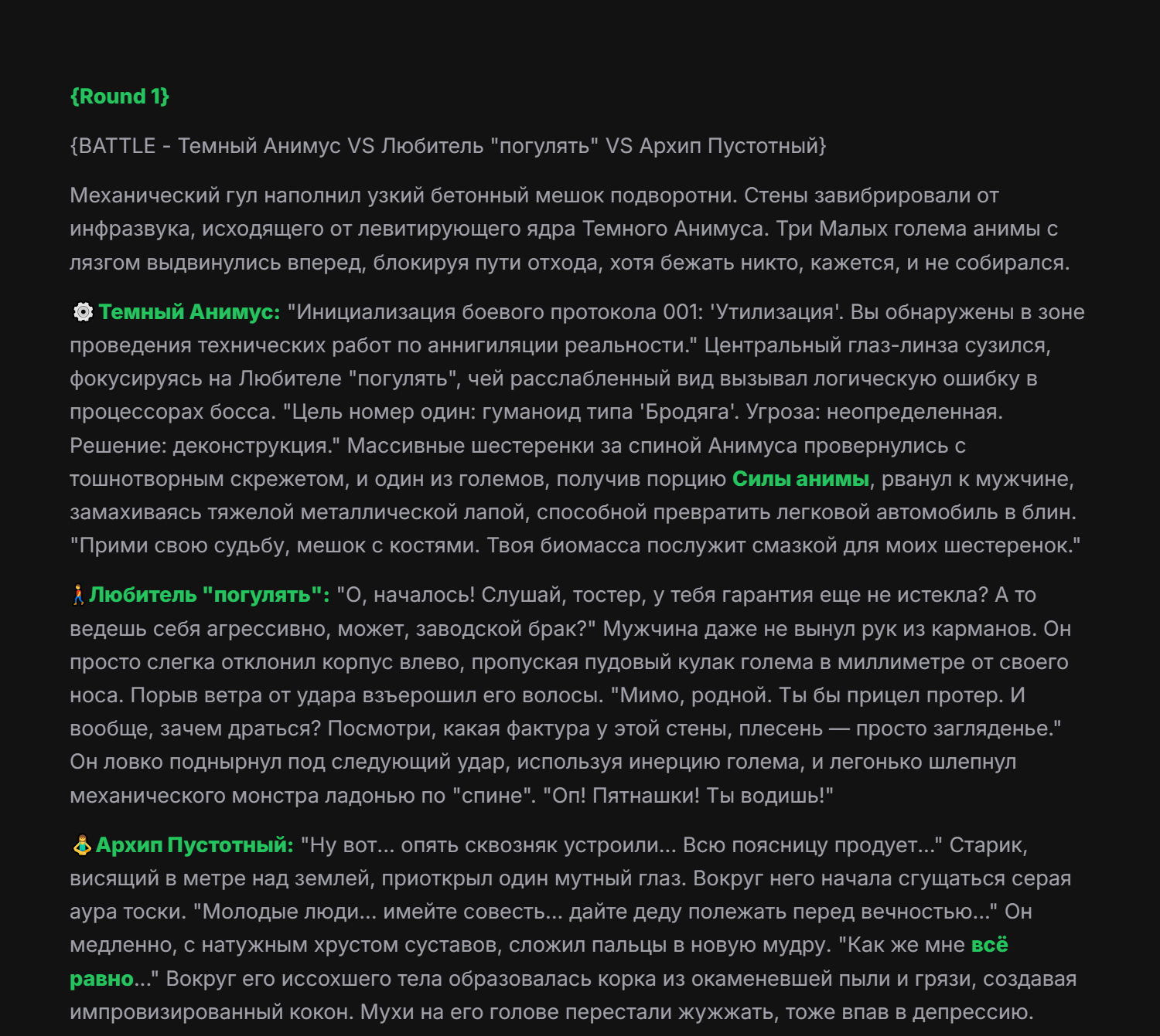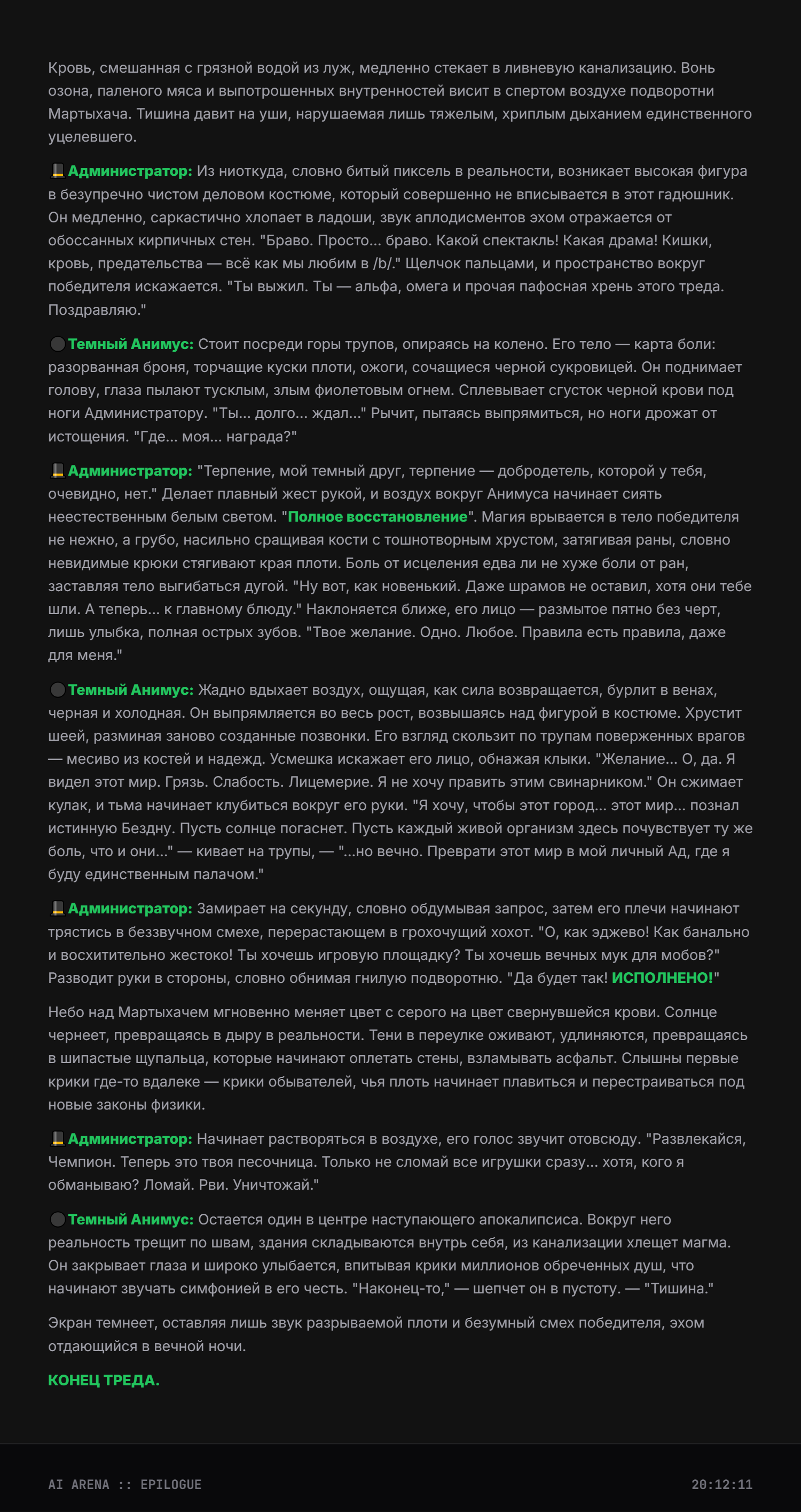 >>326992043 (OP) Архип Пустотный, Класс: Танк-Саботажник, Внешний вид: мумифицированный старик с кожей цвета пергамента, парящий в позе лотоса в полуметре над землей просто потому, что ему лень переставлять ноги, одет в истлевшие лохмотья, вокруг головы лениво кружат три мухи, являющиеся его фамильярами, Характеристики: Здоровье — высокое, Скорость — экстремально низкая, Мана — заменена на шкалу «Смирение», Пассивная способность «Абсолютный Дзен»: если Архип не двигается более 2 секунд, он получает 60% сопротивления любому урону и иммунитет к контролю, так как его сознание находится в астрале и не регистрирует боль, но при этом он не может уклоняться от атак, Первая способность (Q) «Тяжкий Вздох»: Архип издает настолько унылый звук, что у всех врагов в радиусе 10 метров снижается скорость атаки и передвижения на 40% из-за внезапного приступа депрессии и потери мотивации жить, Вторая способность (W) «Мне всё равно»: активируя этот навык, дед покрывается коркой окаменевшей пыли, поглощая следующий входящий урон и преобразуя его в лечение, бормоча при этом «ну ударил и ударил, чего бубнить-то», Третья способность (E) «Игнорирование реальности»: Архип закрывает глаза, становясь невидимым и неосязаемым для врагов на 3 секунды, но при этом он не может атаковать, а просто восстанавливает силы, сбрасывая агро мобов, Ультимативная способность (R) «Нирвана Лентяя»: Архип создает вокруг себя зону радиусом 20 метров, в которой время замедляется для всех, кроме него, враги в зоне получают чистый урон от осознания тщетности бытия, а их способности уходят на перезарядку мгновенно, но не срабатывают, Недостатки и слабости: «Старческий маразм» — с вероятностью 5% любая его способность может не сработать, потому что он забыл, что хотел сделать, «Хрупкие кости» — получает на 20% больше урона от дробящего оружия, «Радикулит» — не может совершать рывки, прыжки или быстрые развороты, скорость поворота камеры снижена, Особенность геймплея: идеален для удержания точек, так как его просто невозможно сдвинуть с места морально и физически, а его основной стиль боя — стоять столбом и ждать, пока враги умрут от старости или скуки.