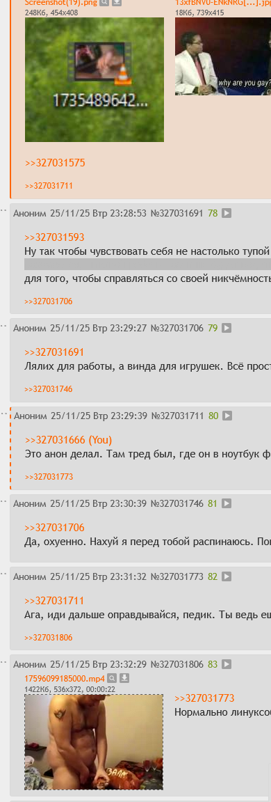 >>327029046 И так, дрискордопидерашьи выблядки вкатываются только на 45 посте. Похвально. >>327029767 >>327031575 >>327033901 >>327034056 >>327039876 >>327041682 >>327041719 И не стыдно же вам, да? Сучьи отродья. Открывайте ротешник, будете урину принимать только так. Есть ли кто-то мерзотней дрискордоскота? Вряд-ли. Мое сердце покорил в этот раз вот этот >>327034056 дрискордопидорун. Это же чистейший ужас, это то, что принято у благоразумных людей называть потреблядком, гоем, нормигноем и остальными подобными синонимами. Думаю для хоть малость адекватного человека это будет весьма понятно, сразу представляется перед глазами шаблонный такой вот говноед. И тут дело не только в дрискорде. Он идет уже как следствие, ведь вся бесятина поразила этого бедолагу еще давно. Я не хочу насмехаться над ним, мне его просто искренне жаль, мне больно смотреть на такое. Это то состояние, когда находишься в каше дерьма, заготовленной тебе недоброжелателями. Поэтому я весьма щедро и заставляю этих овец испивать мочи, ведь только это их очистит. Важна последовательность. Вылей ты на дрискордораста воды, так он пропадет с виду, испарится, сотрется.
