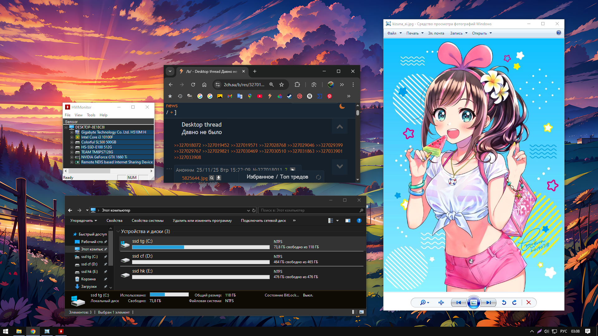 >>32702939 Вот мой рабочий стол >>327029767 У меня ФФ, нет антивира, qbittorrent и нет других программ из твоего списка. Другими словами я подхожу под твой нелепый список, составленный будто таким образом, чтобы он включал только тебя одного. Пошел нахуй, ссу тебе на ебало. Повзрослей и прекрати попытки самутвердиться. Алсо драйвера тоже не установил. Не нашел и у моего ноута полугодовой давности до сих пор не работает тачпад. Надеюсь ты рад, уебан. Зато программа не установлена