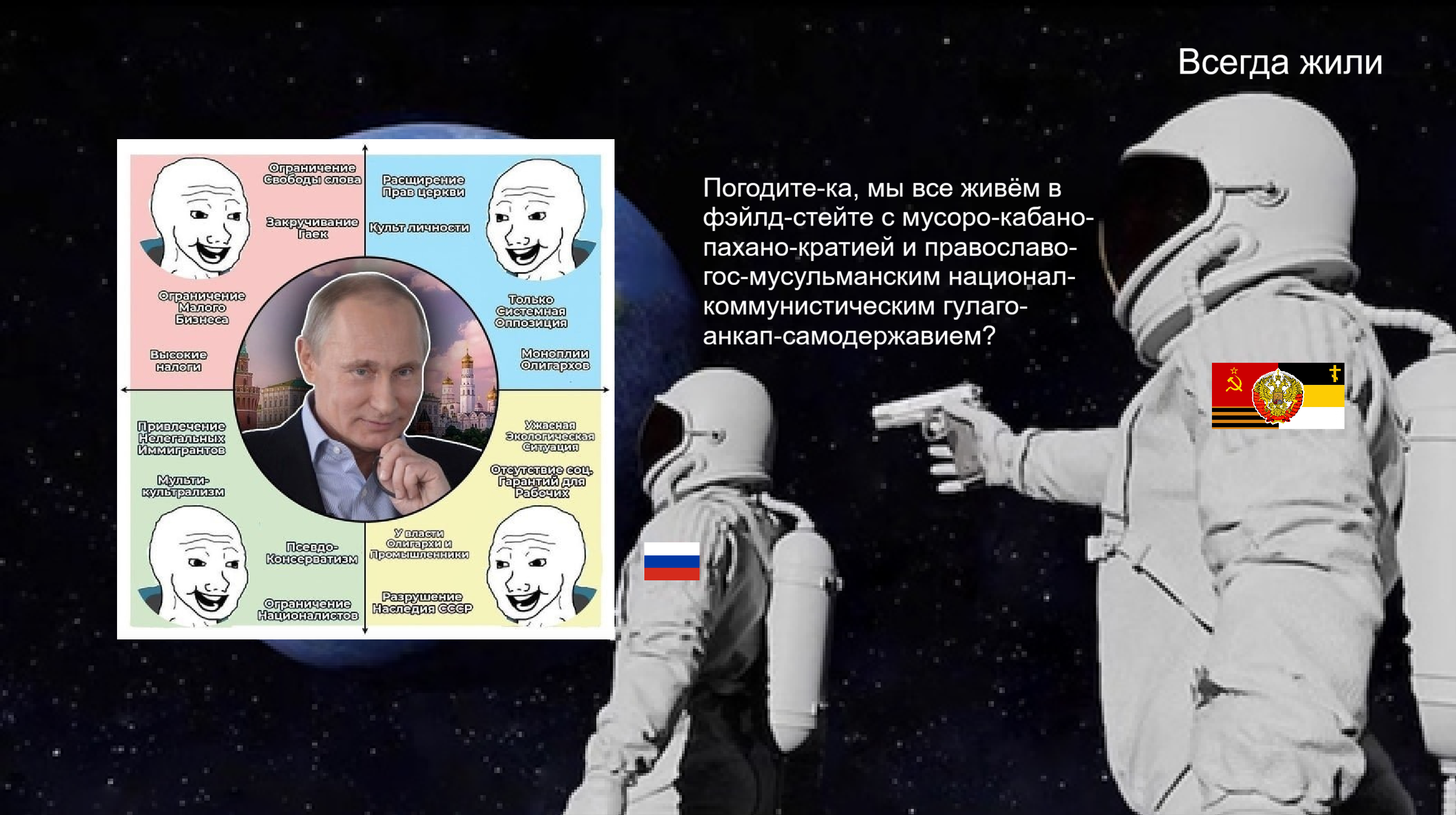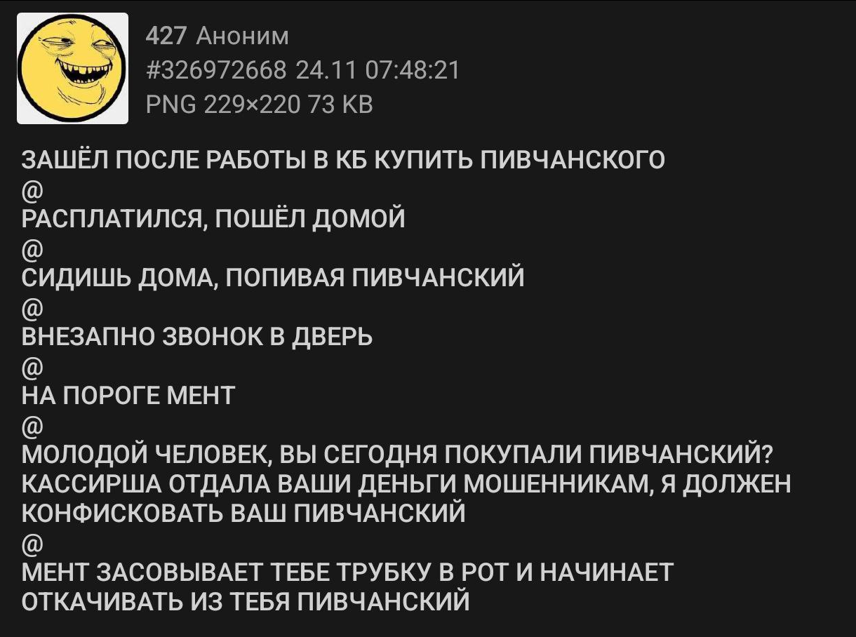 >>327049653 >>327048929 >Я думаю пора заканчивать притворятся правовым государством. > >Воровской феодализм - наш государственный строй. >Есть лорды-воры и их челядь, а есть лохи. > >Это у еврогеев римская юриспруденция. >А у нас как теун кагана решил - так и будет. Ну так Украину западные СМИ уже не первый год фэйл стейтом называют, но вы почему-то упорно продолжаете мриить себе многомиллионолетную историю, что, мол, и Чёрное Море вы копали, и Кваказ вы насыпали, и Атлантиду вы строили, и Америку открыли, и Атлантический Океан наливали и вообще всё на земной куле. Только почему поданусёровым государством "нерабов" закончили, в котором настолько волелюбни людины, что никак не выйдут на майдан против ТЦК и Зэ Пора, хохлинка, признавать, что воровской феодализм - самый что ни наесть украинский строй