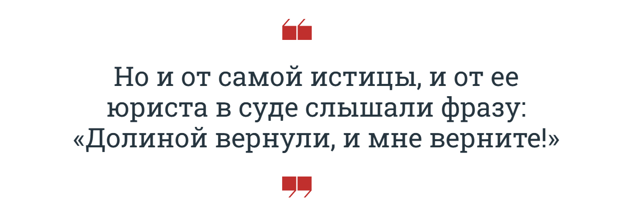 Вопреки применённой судом ст.178 ГК РФ, согласно которой сделка признаётся недействительной, а всем её участникам возвращается всё, с чем они на ту сделку выходили (бабке – квартира, покупательнице – её деньги), суд отправил покупательницу требовать свои деньги к украинским мошенникам. Участие Долиной в сделке признали несущественным, в решении говорится, что именно мошенники должны вернуть миллионы рублей, а не она.