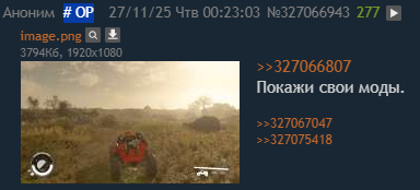 >>327075418 >мои моды на нексусе видят,ору Потому я так и рассуждаю. Полтора десятка лет моды делаю, перевожу, правлю, патчу Попросили показать те самые моды, которые анон делает >Перечислил установленные