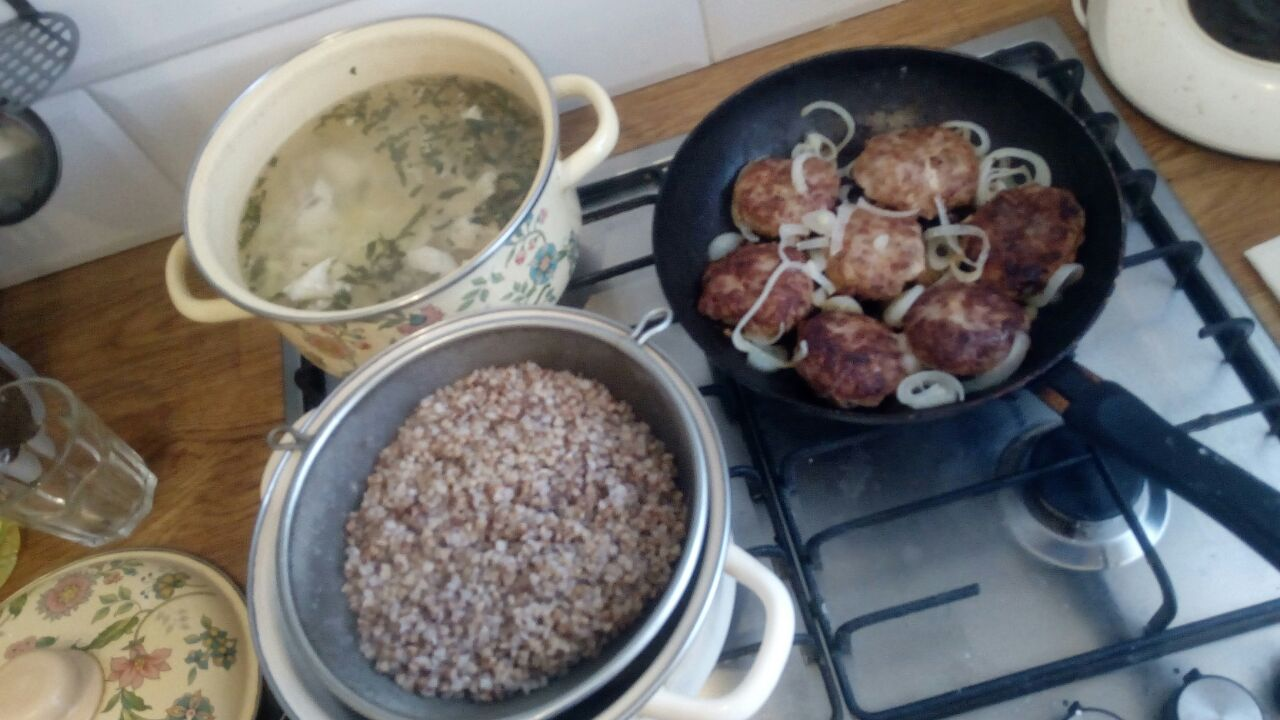 Алсо, гречу и рис можно готовить сразу в сковородке с мясом. Для тех у кого варить не очень получается. Обжариваете фарш с овощами на сковородке, закидываете туда промытый рис/гречу, заливаете водой и под крышку. Все, можно заниматься своими делами, через 15 минут кушать будет готово.