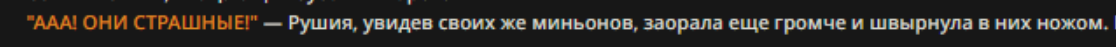 Администратор Компутерсем В темной комнате, освещенной только мониторами, сидел человек. Он смотрел на график просмотров. Стрелка ушла вертикально вверх. — МИЛЛИОН ПРОСМОТРОВ! ДЕСЯТЬ МИЛЛИОНОВ! — заорал он. — ОНИ СМОТРЯТ! ИМ НРАВИТСЯ ЭТО ГОВНО! Он начал истерично смеяться, ломая клавиатуру об колено. — ДА! ДА! Я ГЕНИЙ! Я БОГ КОНТЕНТА! — МАМА! НЕСИ КАМЕРУ! МЫ СНИМАЕМ ВТОРОЙ СЕЗОН! — ТУПАААЯ РЕКЛАААМА! — заорал он на всплывающее окно. — УЙДИ! Он схватил фигурку динозавра и начал грызть её. — В следующий раз… В следующий раз я позову Гитлера и Телепузиков! ЭТО БУДЕТ РЕЗНЯ! — ААААААААА!