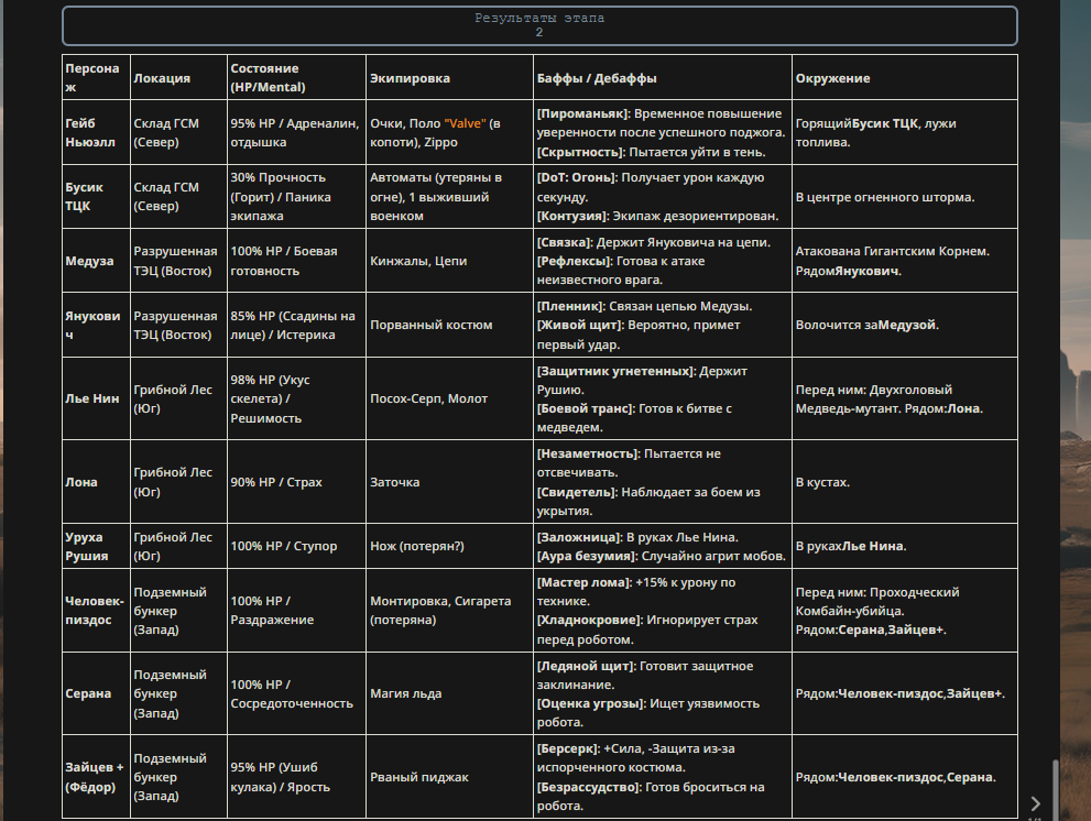 >>327065204 >То, что выше похоже на вайп анкетами. А я подумал, что много кто хочет сыграть учитывая количество постеров. Хотя твой вариант то же возможен.