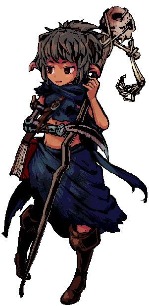 Уруха Рушия. Рушия – тихоговорящая, отчасти наивная девочка, которая легко впадает в панику. В то время как она обычно невинная и добрая, она может иногда впадать в ярость и кричать и кидаться на окружающих в нехарактерной манере зверя прежде чем восстанавливая своё самообладание. В процессе накопления армии и сил становится более уверенной и целеустремлённой. Некромант из Академии царства демонов. Способна быстро поднимать павших в бою, нежить с кладбища, умерших животных, монстров, роботов, да что угодно, любые предметы оживают. И подчиняя их себе. Сама по себе в бою она не сильна, но поднятые ей воины крайне живучи, выносливы, опасны. Обычно они менее умные, чем при жизни, но куда сильнее. Поднятые НПС/предметы многочисленны и сильны, но самые лучшие получаются из поднятых участников. Может поднимать и управлять сколько угодно бойцов. Вооружена очень острым ножом. Предпочитает не вступать в битвы, убегать, сдаваться, вступать в союзы, что угодно для выживания. Лишь мысленно направляя своих могучих неживых воинов.