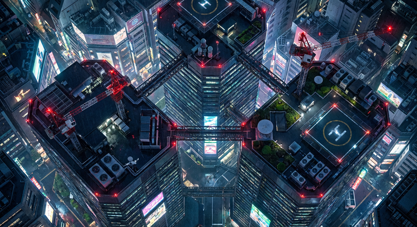 Описание: крыши трёх небоскрёбов в Токио недалёкого будущего. Имеют переходы между собой, освещённость умеренная даже в ночное время. Имеет обилие укрытий и возвышенностей, не говоря уже о кранах, которые дают отличные позиции для осмотра местности. Есть три выхода в здания на каждой из крыш, которые ведут в офисные помещения.
