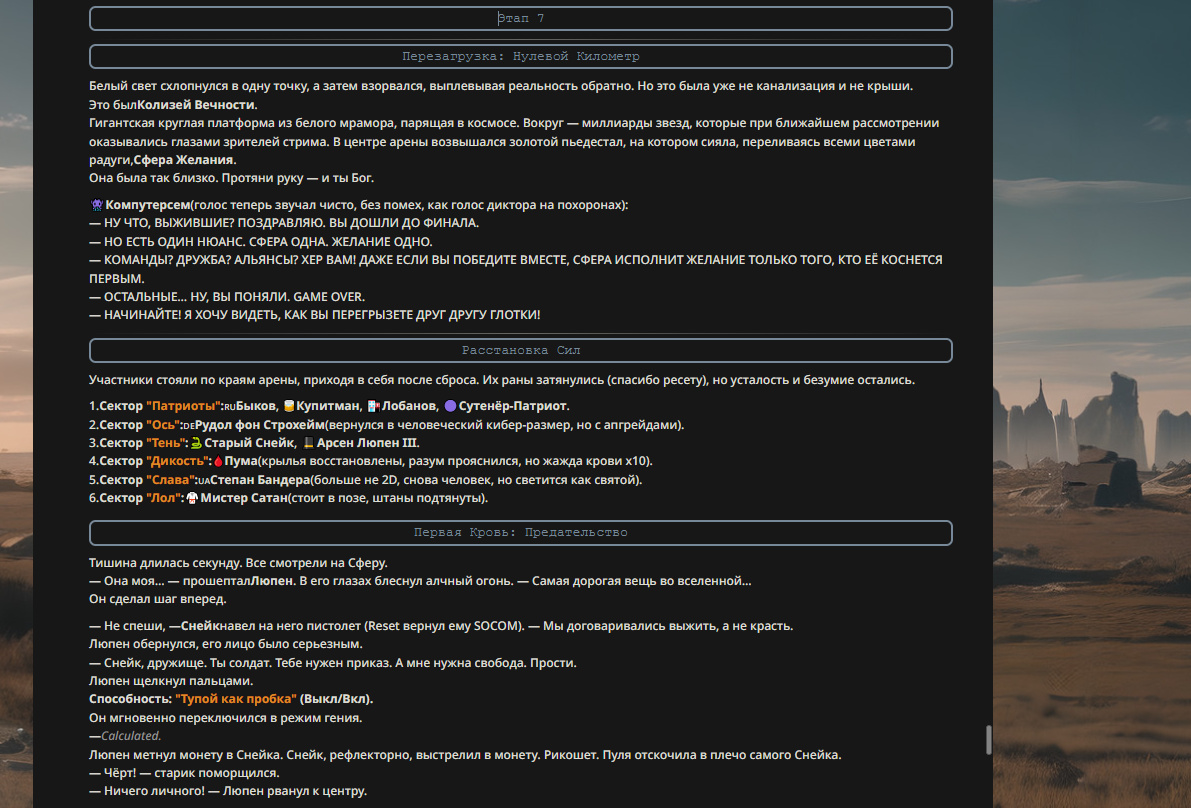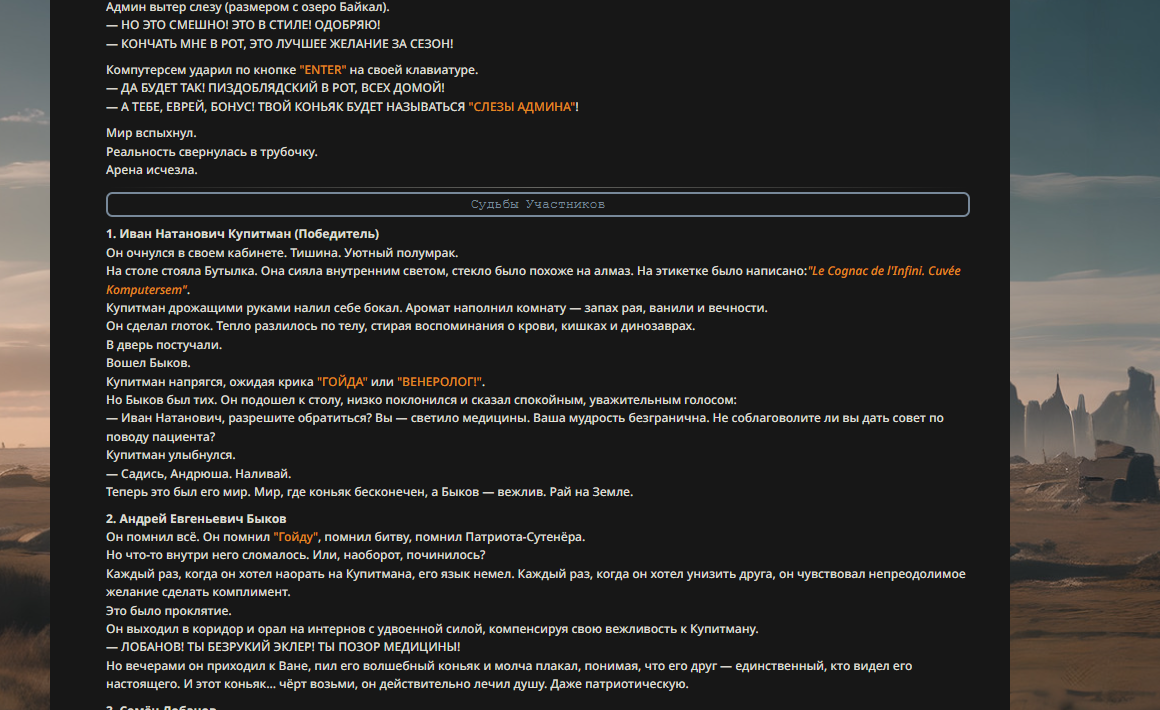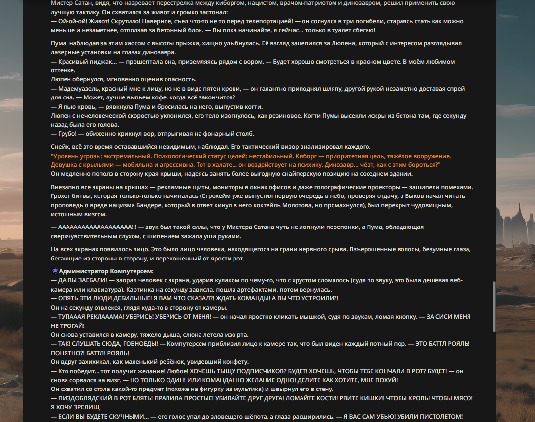 Королевская битва началась. Правил нет. Только желания, безумие и смерть. И где-то над всем этим, в цифровой пустоте, истерично смеялся Компутерсем, ожидая первой крови.