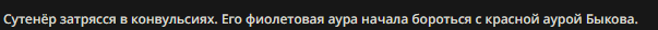 Зачитана первая строка - противник чувствует критический удар в висок Зачитана вторая строка - противник получает сильный удар током Зачитана третья строка - противника прибивают к стене два ножа, вонзившихся ему в плечи Зачитана четвёртая строка - противник получает выстрел в тело из материализовавшегося пистолета Зачитана пятая строка - противник лишается одной руки или одной ноги Зачитана шестая строка - сердцебиение противника падает до критических значений Зачитана седьмая строка - интеллектуальные способности противника уменьшаются до уровня олигофрена Зачитана восьмая стркоа - противник оказывается почти полностью парализованным Зачитана девятая строка - Сутенёр по имени Прилизанный харкает в лицо противнику Зачитана десятая строка - противник телепортируется в открытый космос
