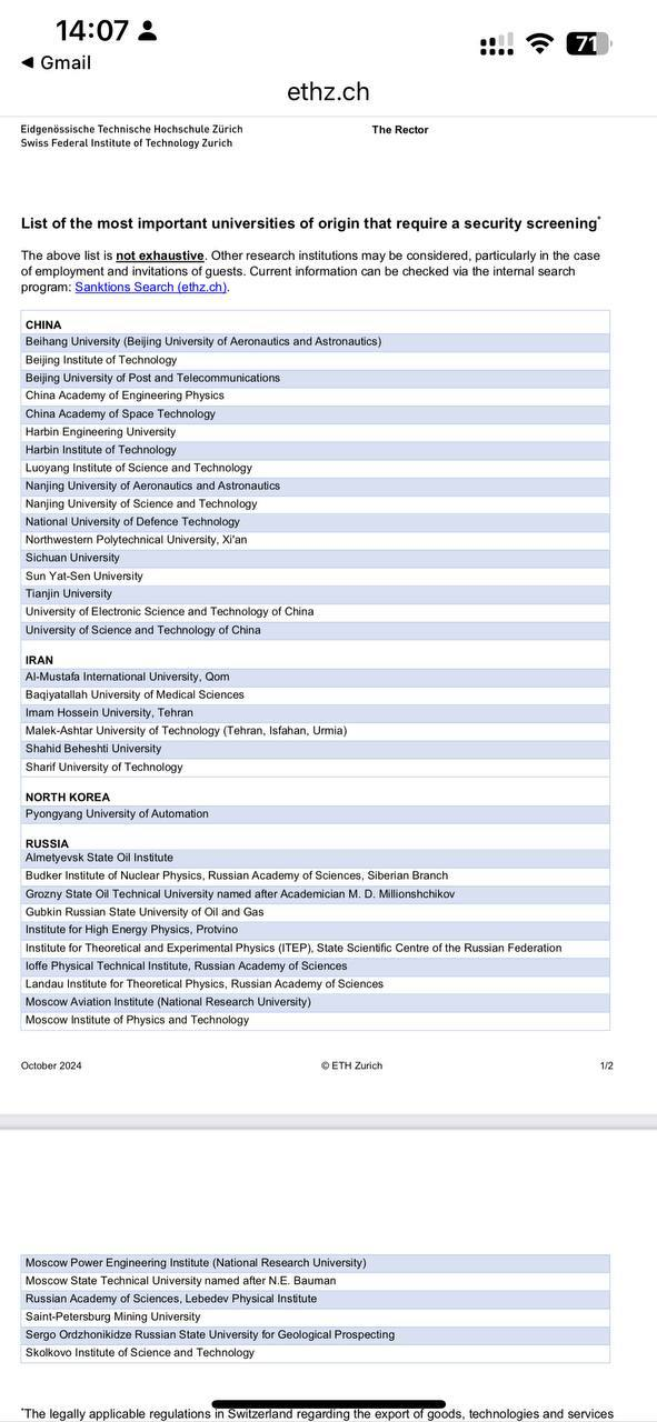 >Санкции американские В eth zurich и epfl их почему-то выполняют. Ну это просто шиза на уровня универов.