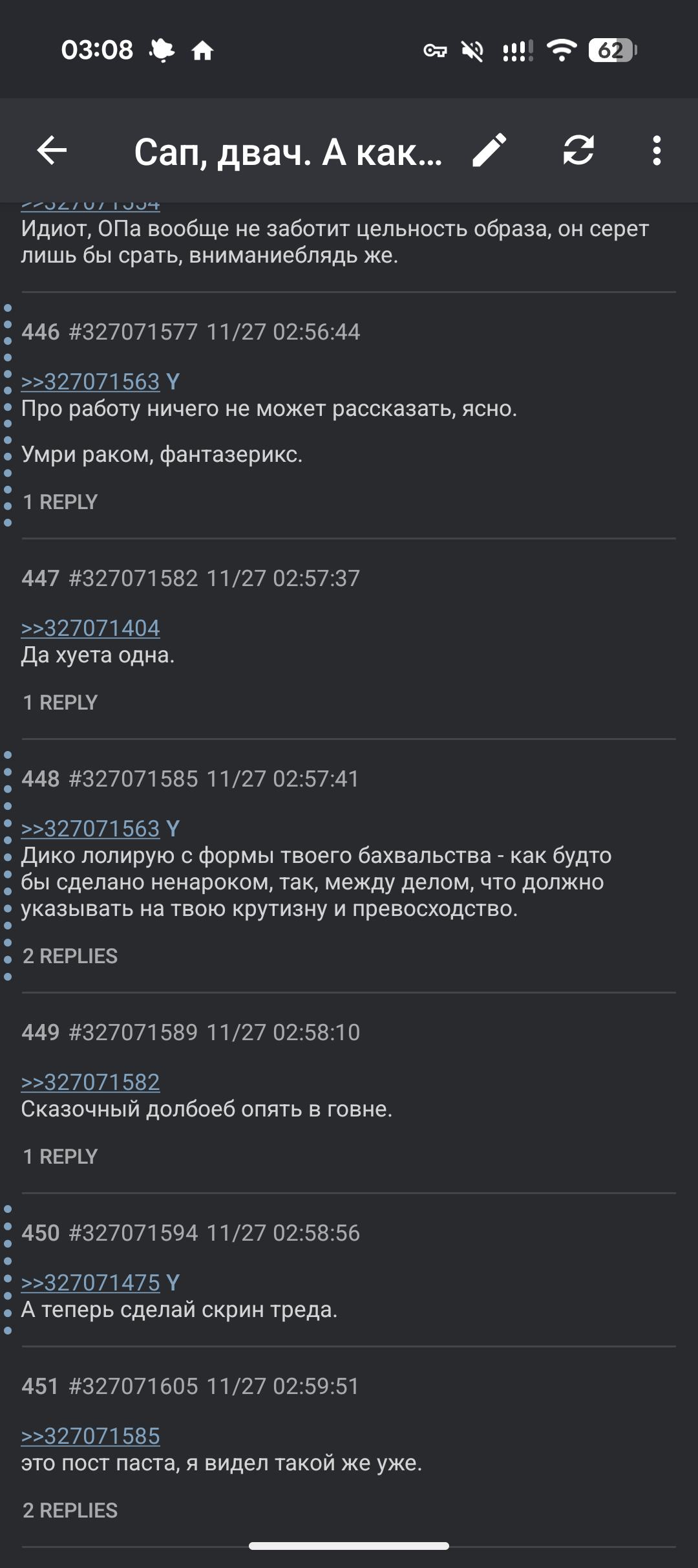 >>327070905 >>327070924 Как же ты завидуешь, бедный. Иди суетись, мамке спасибо скажи что в прекрасный мир выродила, в котором так приятно выживать впахивая на бессмысленной каторге ради чьего-то профита