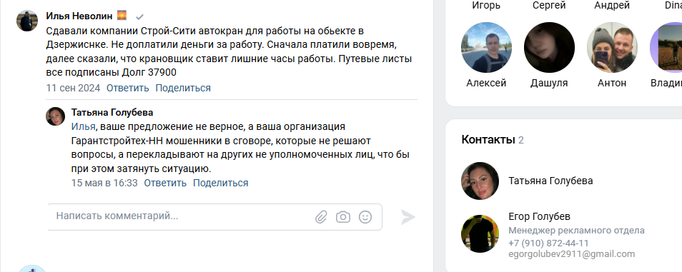 В контактах конторы два контакта: сама Татьяна и её сын (пик 2), Егор Голубев, указан как Менеджер рекламного отдела