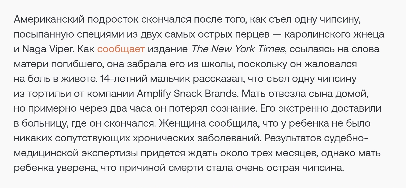 >>327194441 (OP) Это байт? Они не такие уж и острые. Вот как-то ел какие-то кукурузные завитульки с перцем огурцом и лаймом, вот там реально пасть не чувствовалась, все рецепторы выжглись.