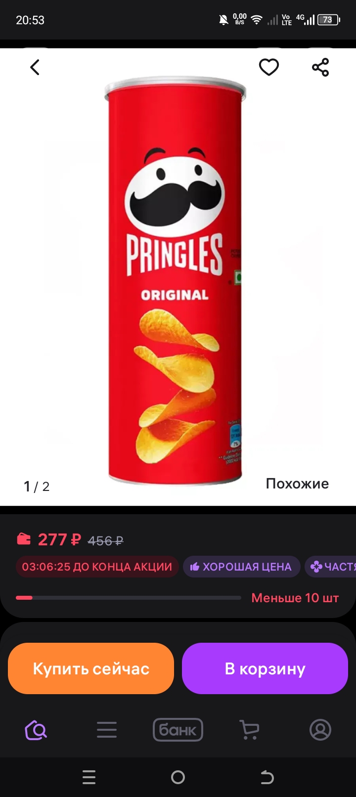 >>327203173 Ты удивишься, но в принглс масла больше, просто из-за того, что там не полноценный картофель, а считай тесто, масло меньше ощущается, но замешивается его туда больше потому что оно не только на поверхности, а в самой структуре чипсины.