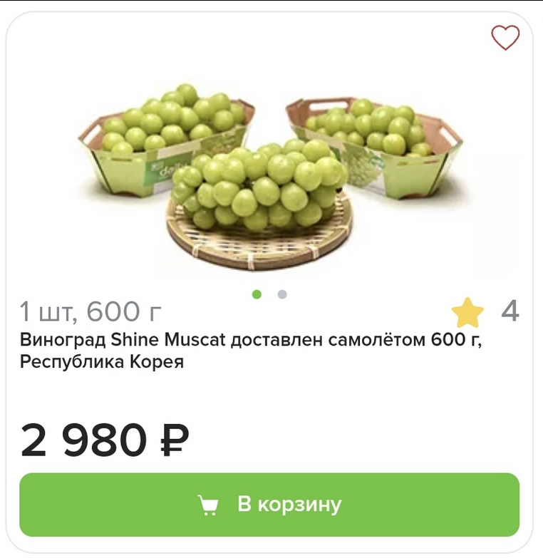 >>327196551 Пиздец, в перекрестке такой же за 300 рублей брал. Офк он там не Корейский, а Китайский, и доставлен не самолетом, но сомневаюсь, что есть разница. Сорт один, просто есть качественный, крупный, а есть более мелкий, он менее вкусный, и косточки попадаются, которых там быть не должно, но продаются они за одну цену примерно, в районе 500 рублей.