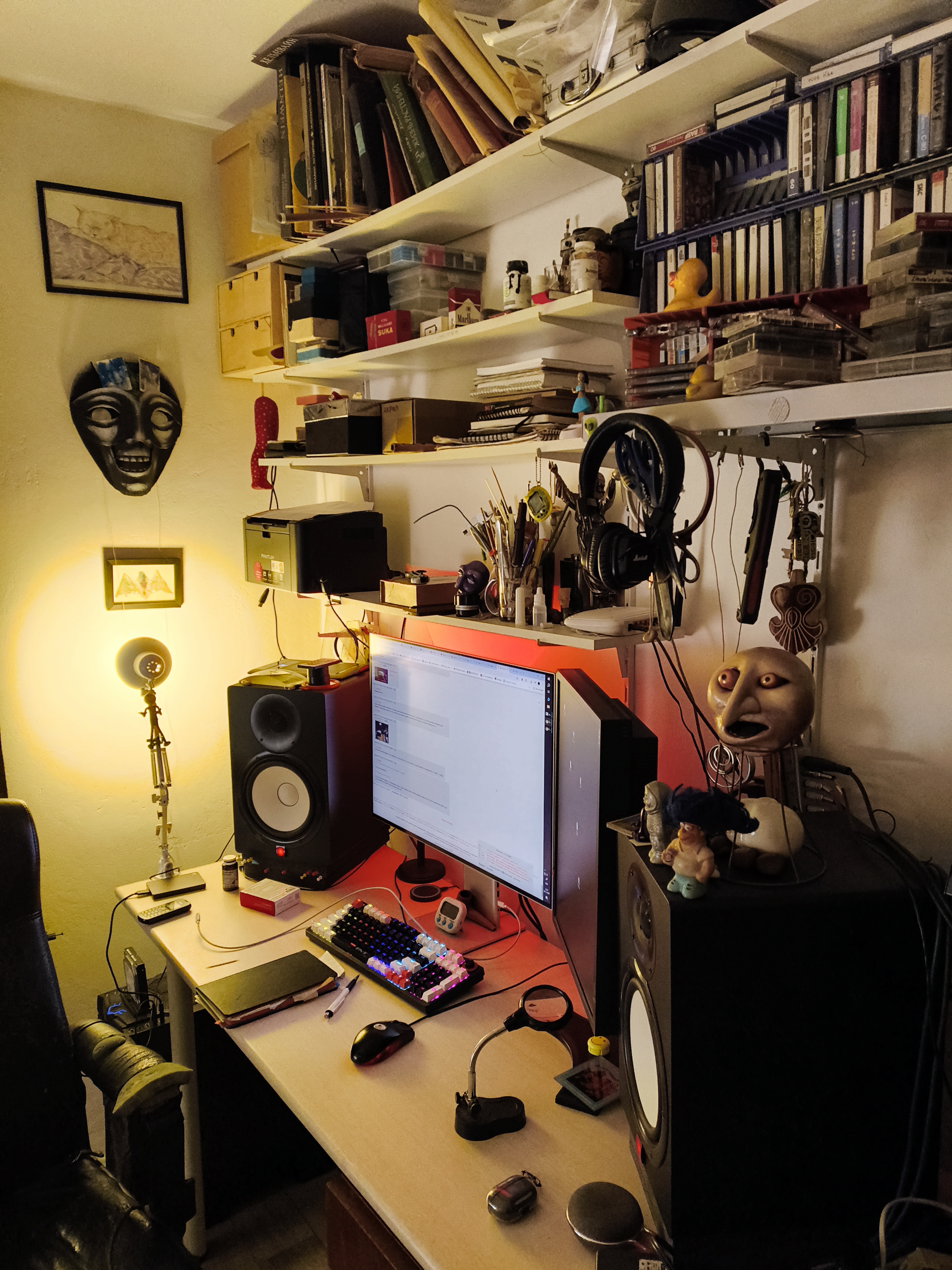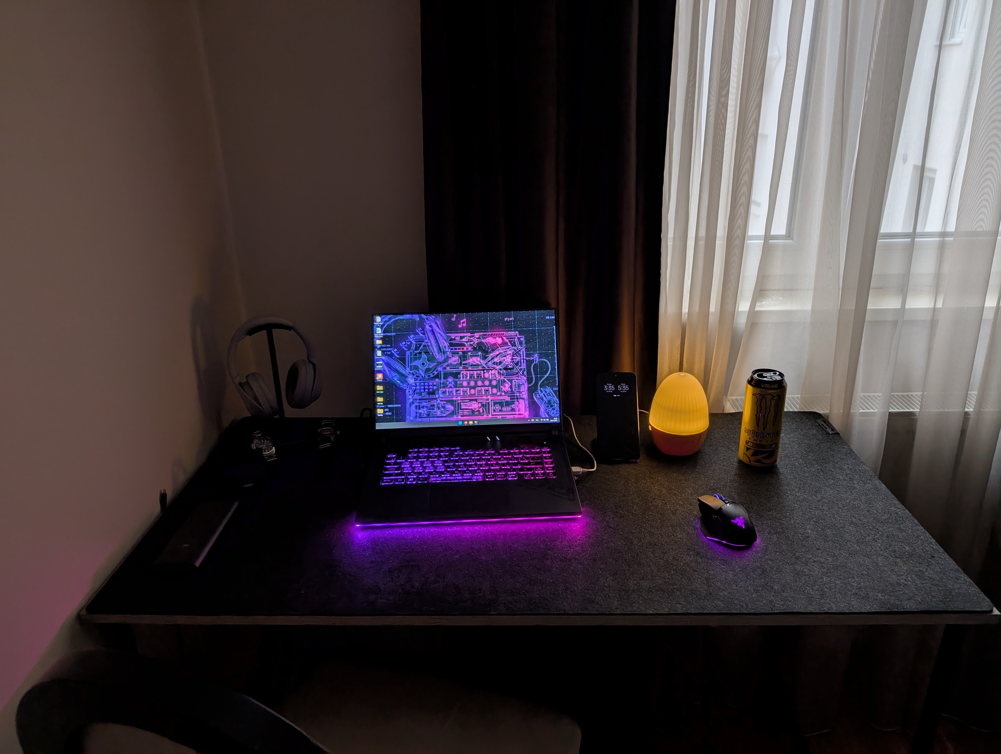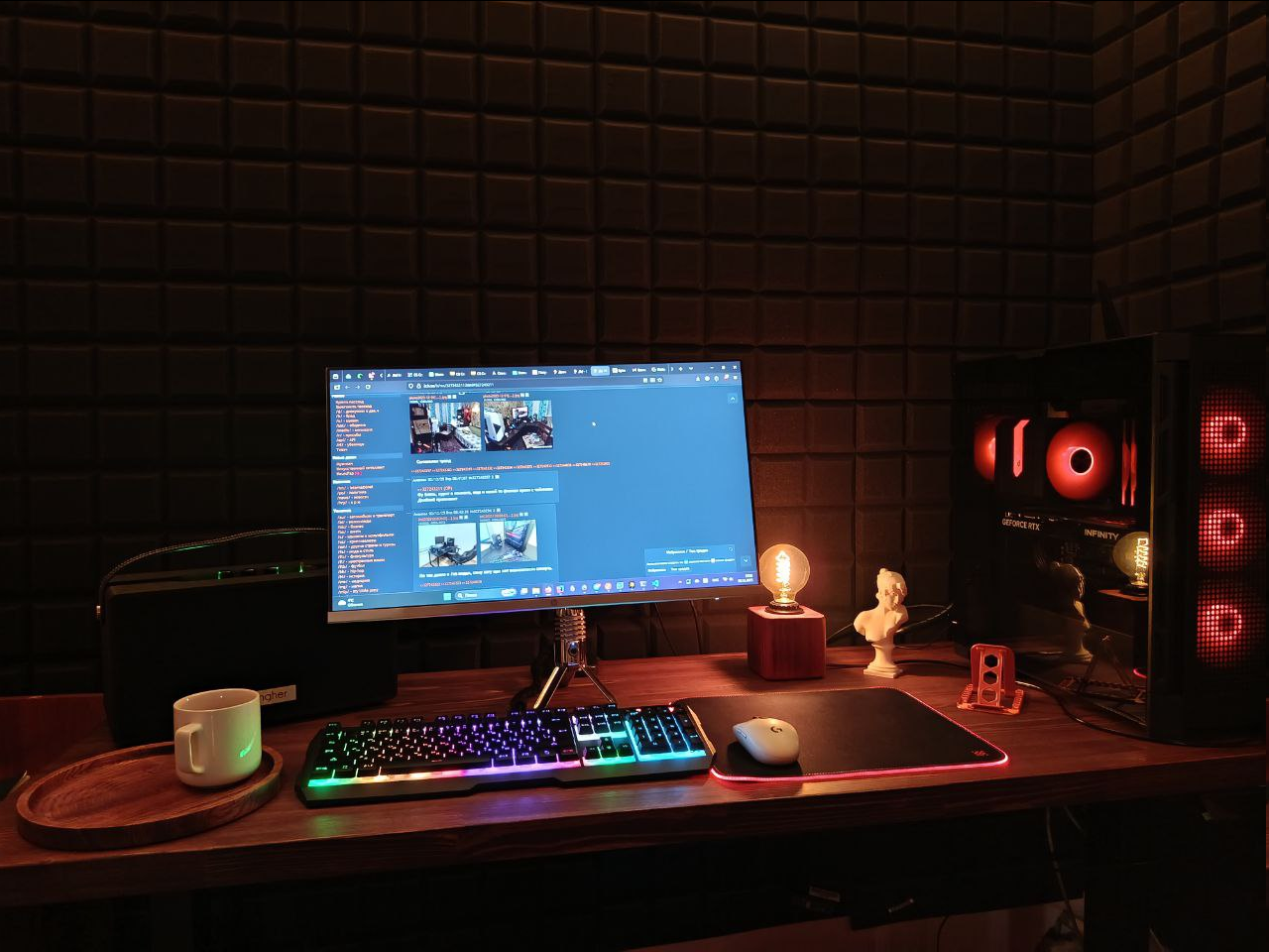 > Когда комп на столе он подсветочкой светит красиво и освещает стол, на полу он будет тебе на тапочки светить.