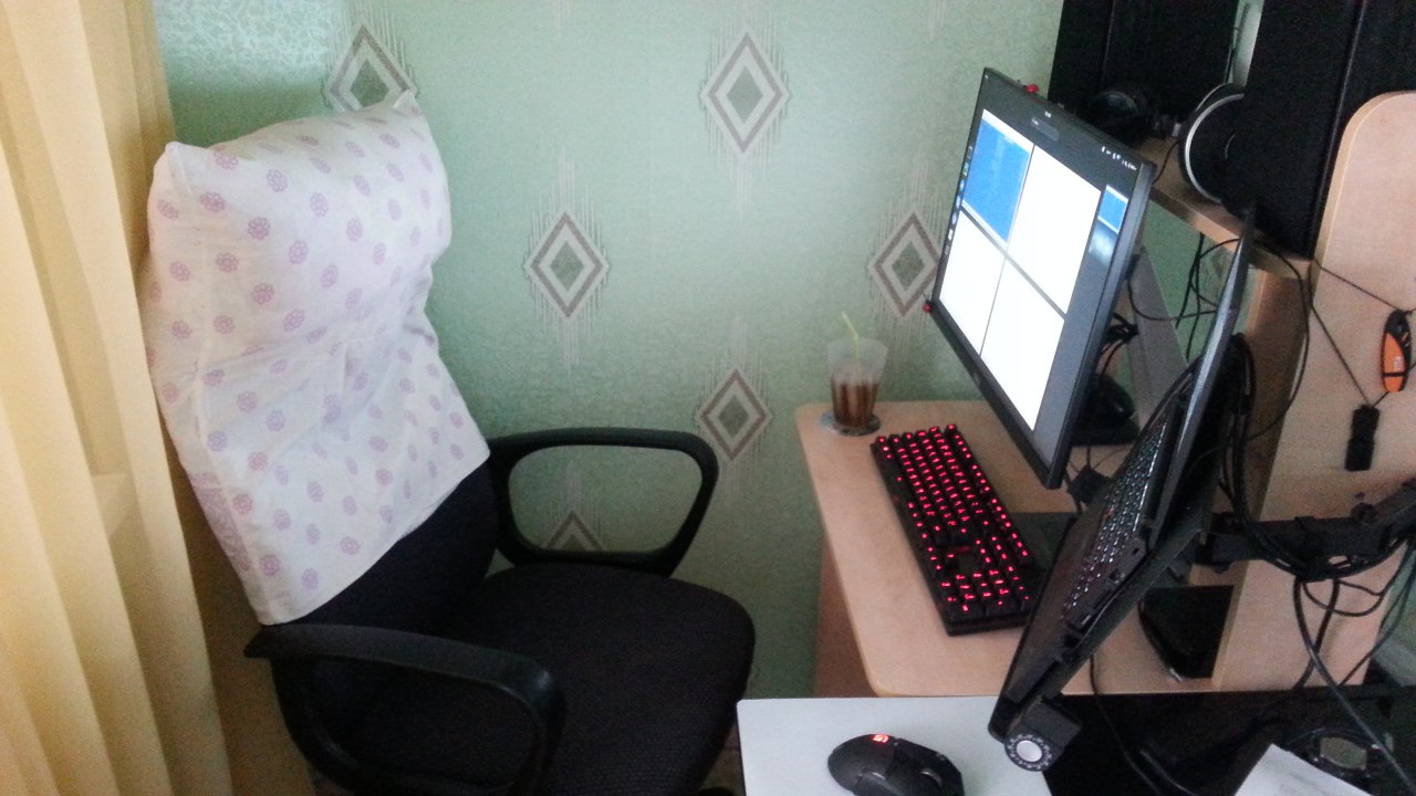 Хуйня это ты, причём по жизни. Я на этот раз его кастомным каркасом из труб закреплю, который будет частично приделан к раме стола. Ну или перенесу на пол. Но второй вариант не очень приятен, ведь комп стоя на полу сосёт в себя пыль подобно пылесосу.