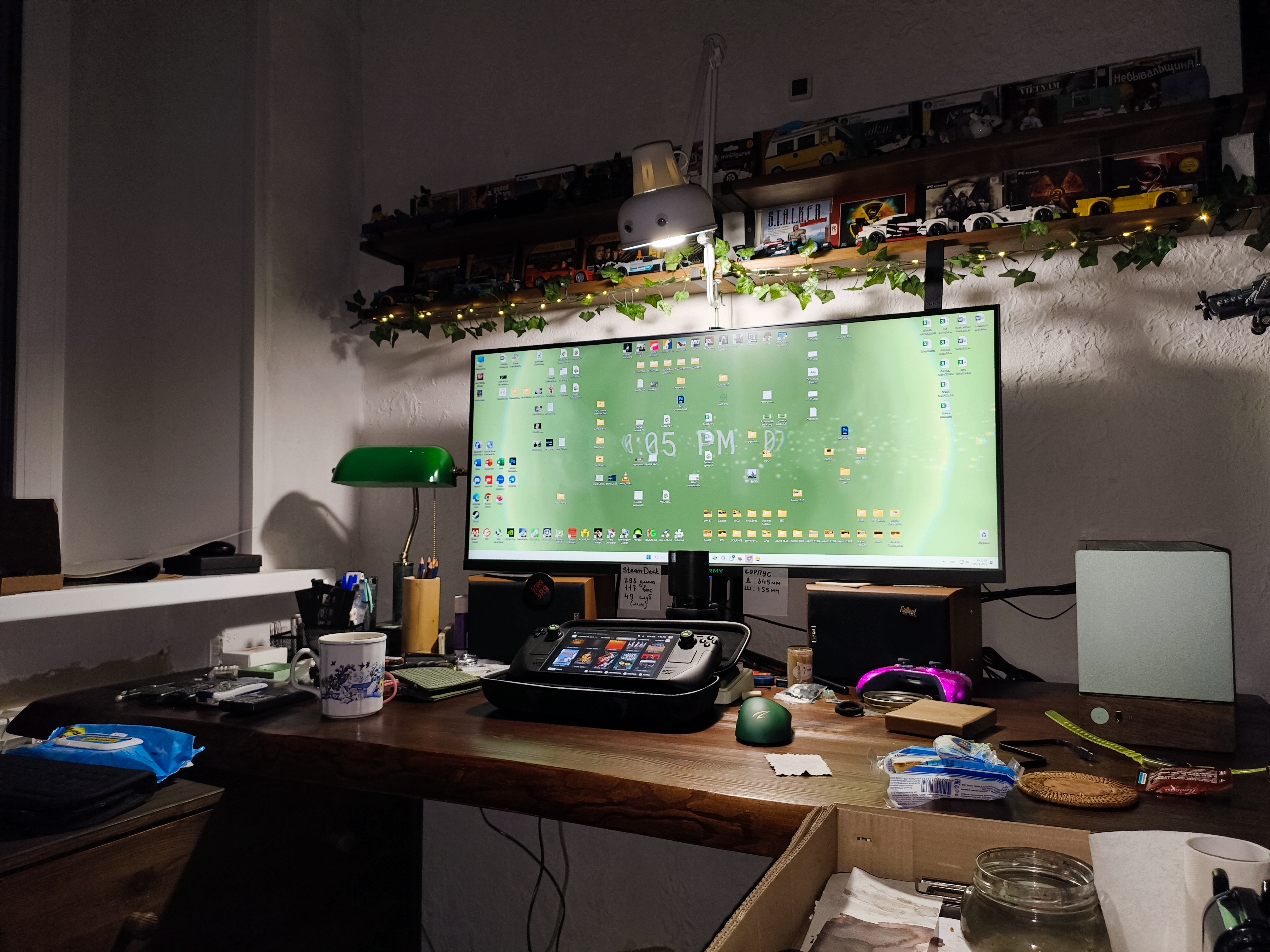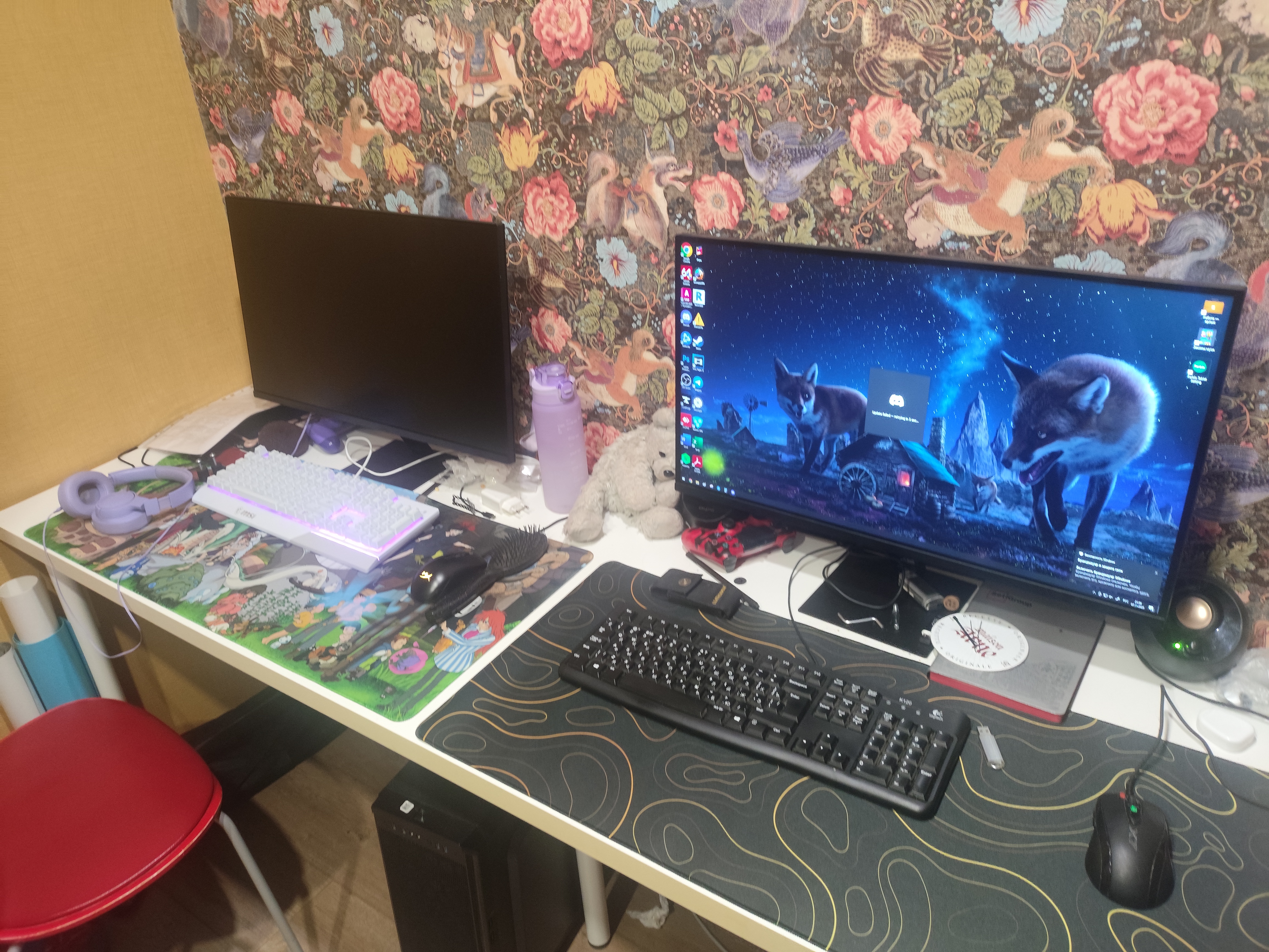 Нахера системник на стол ставить, у тебя и так тесно, поставь под стол, чтобы место не занимал.