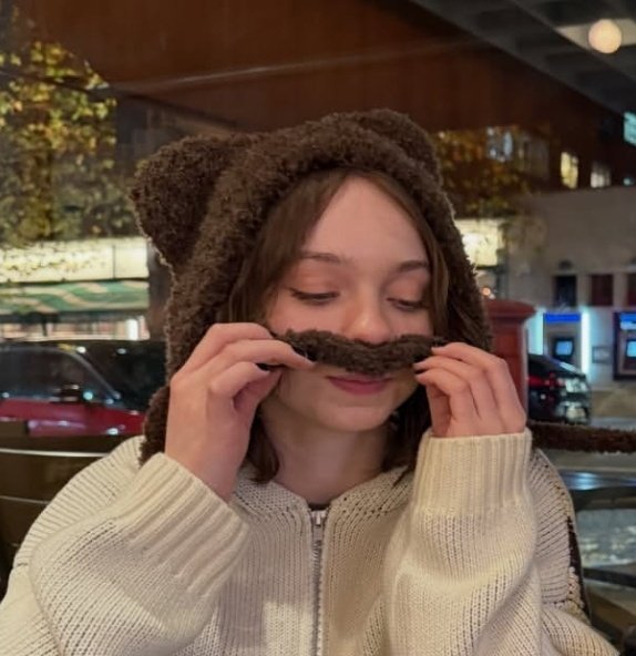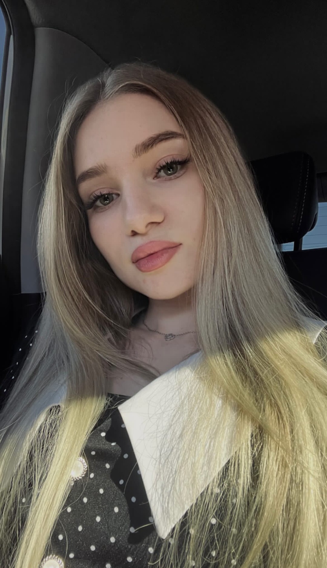 Exact girl from reference photo: use every detail of face, eyes, hair, clothing, pose, lighting and background exactly as in reference, no additions or changes.