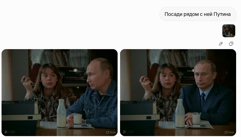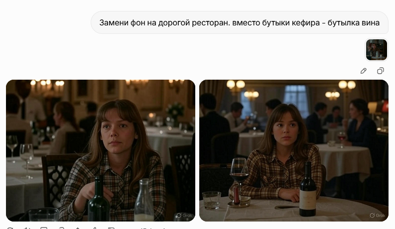 В этом была суть моего примера. Генерировать фото в гроке это то еще говноедство. Я таким не занимаюсь.