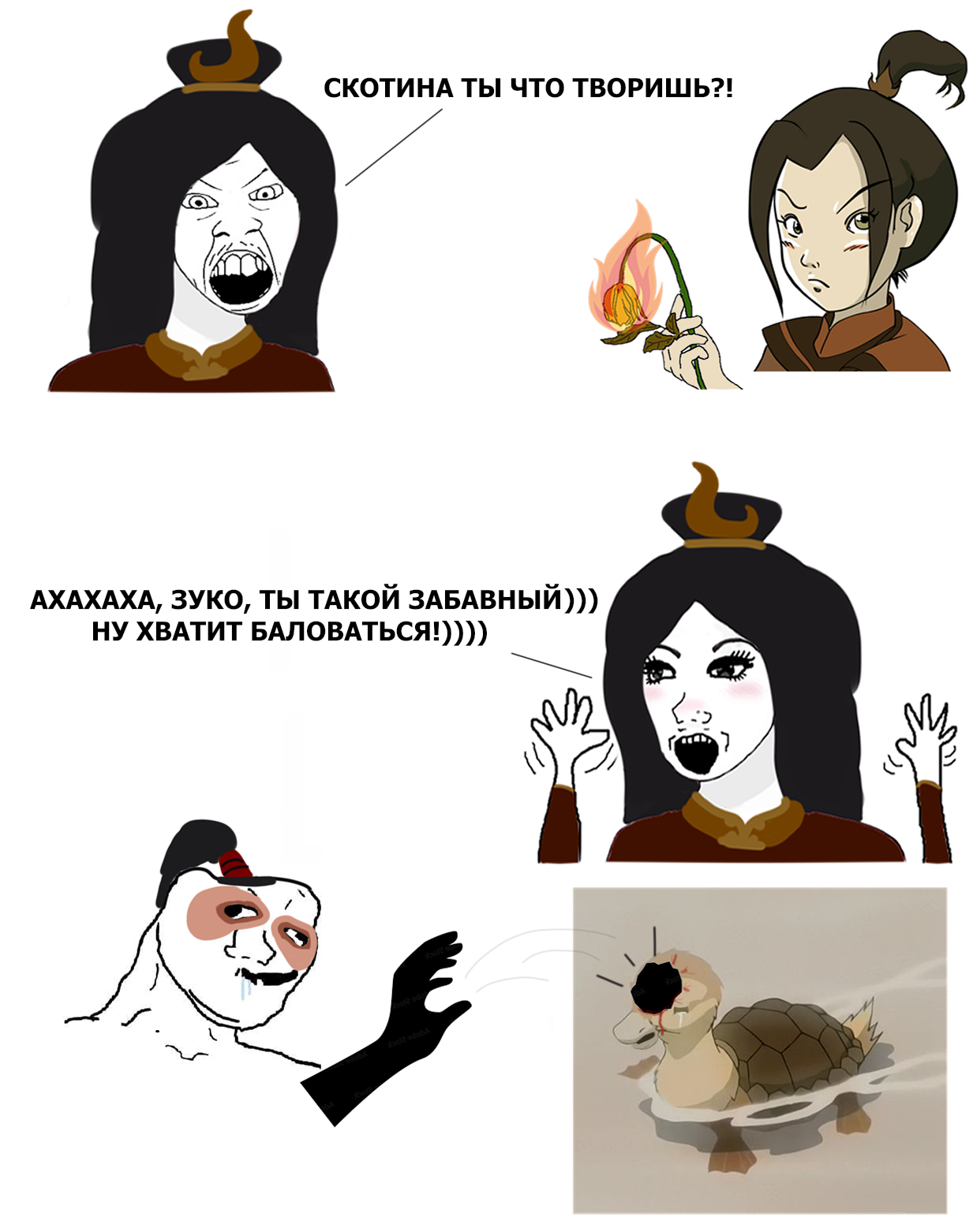1. Обвинил в изнасиловании которого не было. 2. Когда обосрался кем был Озай, все свалил на Азулона. 3. Ещё что-то требует и возмущается. Пздц тварь. Чистый агент белого лотоса
