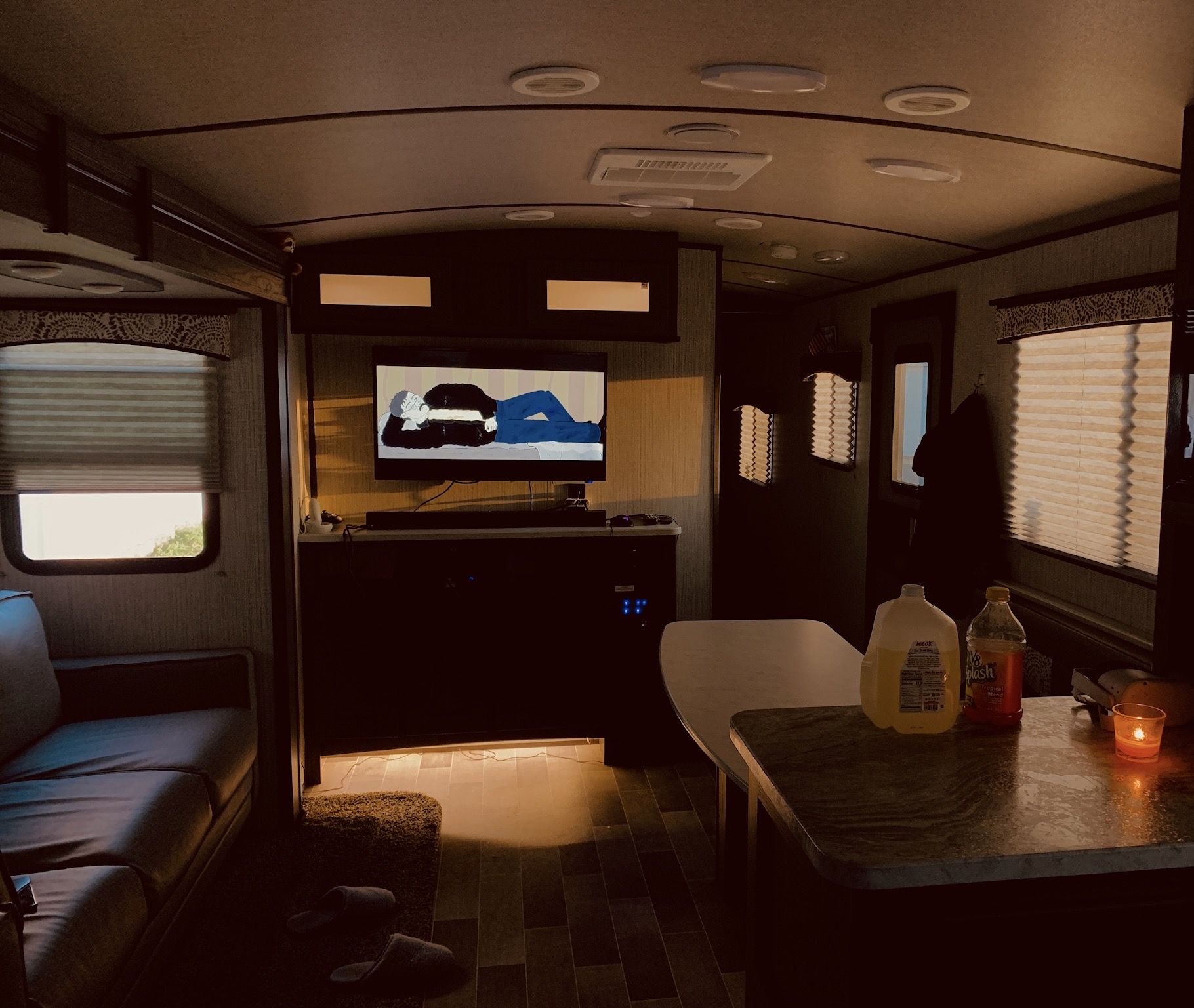> Что твм за история с трейлером, чем закончилась? Да там много минусов и нюансов, первый это то что я взял себе именно RV трейлер то есть для него мне нужен был хороший тягач и пришлось еще взять в лиз эту дуру только для того что бы его перемещать за собой Но такая машина не для подработки, не для путешествий не годится из-за расхода и расходников Для комфортной жизни этот трейлер всегда надо было парковать на специальной стоянке где можно было подключить воду/канализацию/электричество Да, там есть резервный бак для воды и говен но он не большой и его надо куда-то сливать и поддерживать в нем чистоту а это покупать всякие чистящие средства и тд Так же эти трейлеры очень не устойчивы, ну к примеру кошка бегает по нему а ты лежишь неподвижно на диване и он весь ходуном ходит Можно конечно было заморочиться и очень устойчиво его поставить, но это слишком много мороки особенно когда постоянно меняешь локацию Отопление было газовое постоянно эти баллоны кончались не в подходящее время потому что плита тоже от них работала, и приходилось иногда по среди ночи ехать на заправочную станцию что бы купить/обменять баллоны на новые