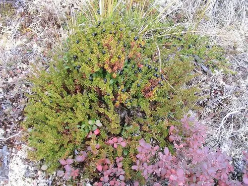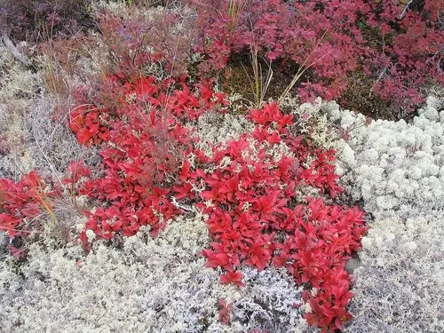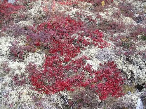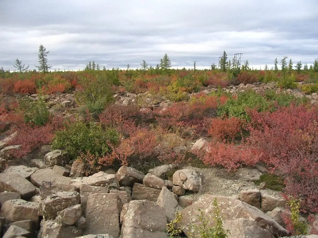 Черника. Ягель. Красным листьям название не знаю (может, кто-нибудь подскажет), но не черника — листья жесткие. Впечатляет, эта до первого снега или хорошего заморозка. Хочется, чтобы теплая осень стояла бесконечно долго, и небо необычно красочно. Однажды наблюдали, как на почти совершенно чистом небе образовались облака. Трудно передать словами, происходило так — на одном месте, из ниоткуда, выдувались как барашки тучки, некоторые выходили кольцами, словно кто-то невидимый курил трубку. И поплыли они на одинаковом расстоянии друг от друга, как гуси. Мы даже остановились, чтобы посмотреть.