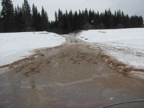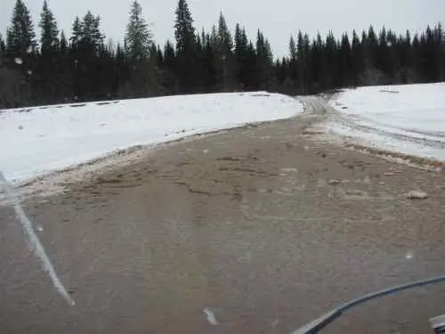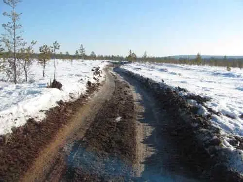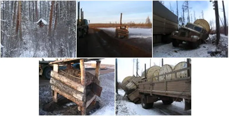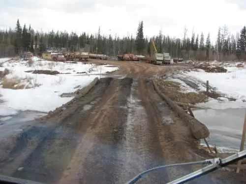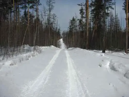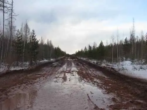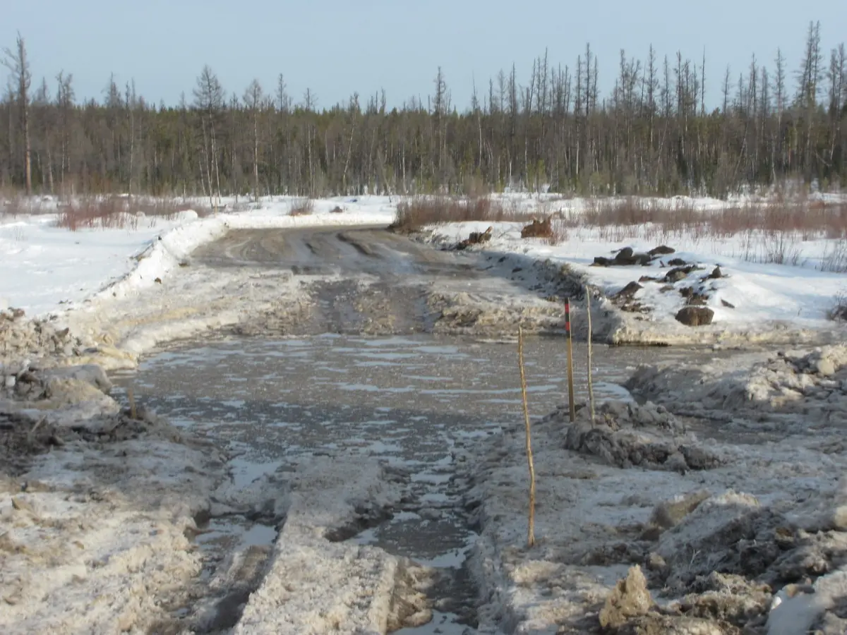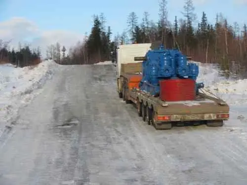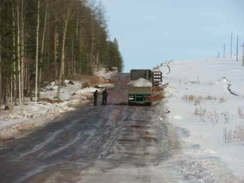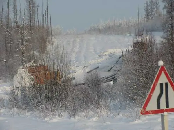 Лесные речушки. На вид речки невзрачные, неприметные. Если появилась вода, кажется небольшая наледь. Где-то поставлены вешки на переезде, где-то их вовсе нет. Именно в таком месте у нас однажды от удара об лед сломалась балка на фуре. Нельзя относиться с пренебрежением к таким переправам. Хотя переезды дорожниками укреплены, но речки умудряются даже среди зимы вскрываться, образую огромные наледи, собирая сотни машин с обеих сторон. Груза в последнее время возят до 60-70 тонн. Весной идем по воде с осторожностью, провалиться можно до двух и более метров. И не дай Бог в конце зимника оказаться в дороге между вскрывшимися речками, тогда, как говорят водители: «Все, вилы!» Одна надежда на дорожников.