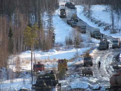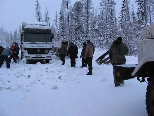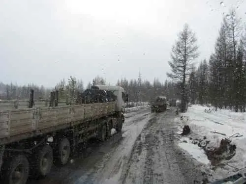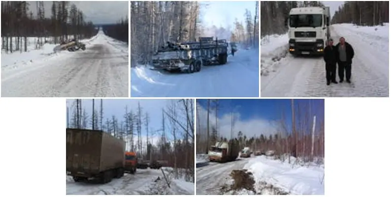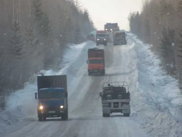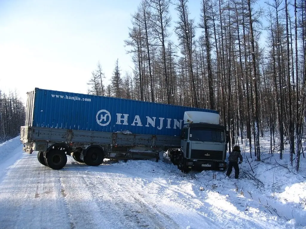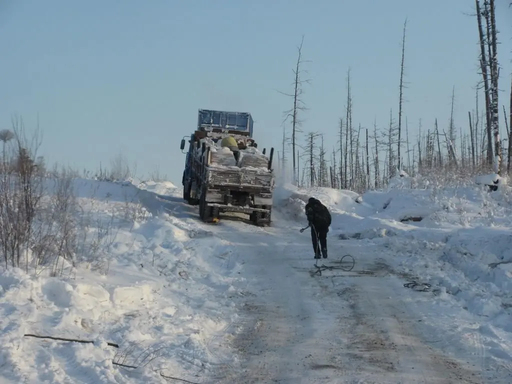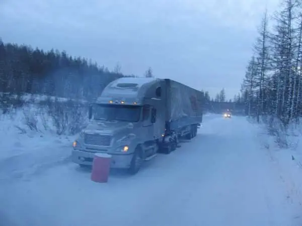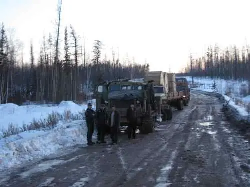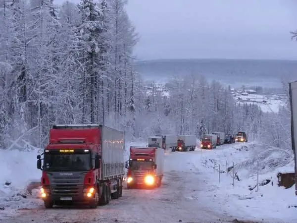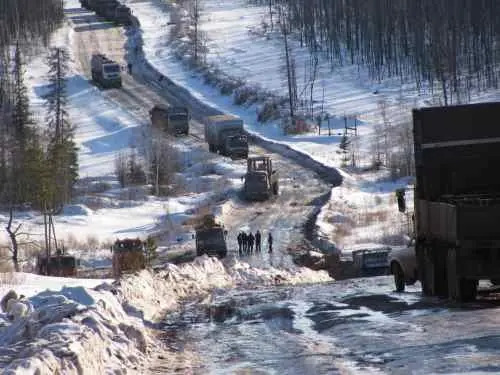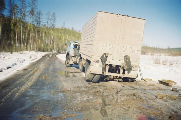 Для тех, кто не знаком с дорогами Якутии, поясняю, что доставка любого товара на Север в зимнее время производится автотранспортом по зимнику, это с декабря по апрель. Протяженность от Усть-Кута Иркутской области до Мирного (Якутия) — 1 100 км, из них 830 км зимника. Зимник — это дорога только зимой, и которой нет летом — тайга, мари, болота, реки и речушки. Летом главной транспортной артерией становится река Лена. Мы же в основном работаем в зимнее время. Весной, когда дорога становится непролазной, возвращаемся домой. И так до открытия следующего сезона. Бывает, что вернуться не успеваем, домой добираемся на барже. Повезет, если летом находится работа.