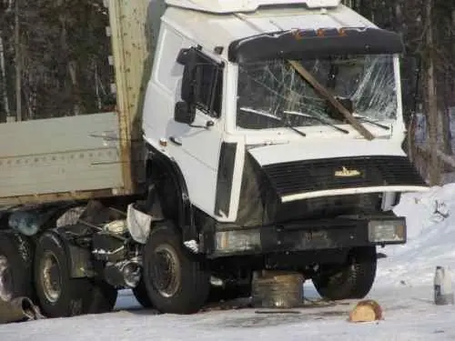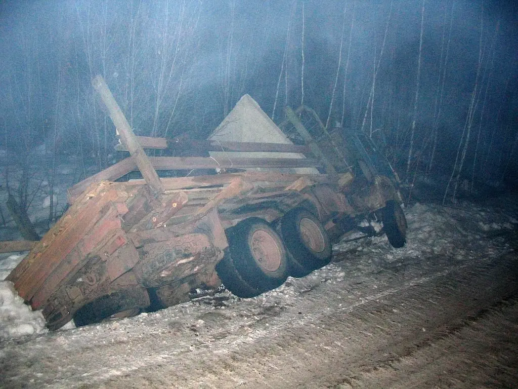 Чудом пролетели поворот, впереди метров 500 машина, немного не догнали. Остановились. Спрашиваю «…а если бы догнали?». Говорит: «Здесь уже не страшно, кабину можно отремонтировать, — и еще смеется — а ты чего не кричала?» А о чем кричать-то?! Действительно страшно. За спиной более двадцати тонн труб. Мы уже не раз видели, к чему приводят подобные ситуации, когда поехавший груз утюжит кабину. Муж пошел осматривать машину и причину нашего ЧП. Тормозной шланг оказался как разрубленный. Видимо, сказались морозы. Но надо ж было такому случиться именно на этой злополучной горе. Наверное, здесь аура такая аномальная. Когда вернулись с рейса, Саша купил бутылку и говорит «Ну что, выпьем за день рождение?» Выпили.
