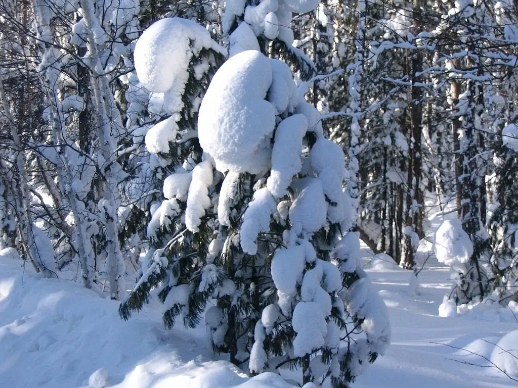 Под тяжестью снежной шапки трогательно склонили головы подростки-кедры. Чем-то походи на персонажи из кинофильма «Чужие».