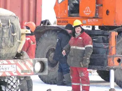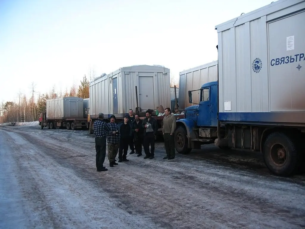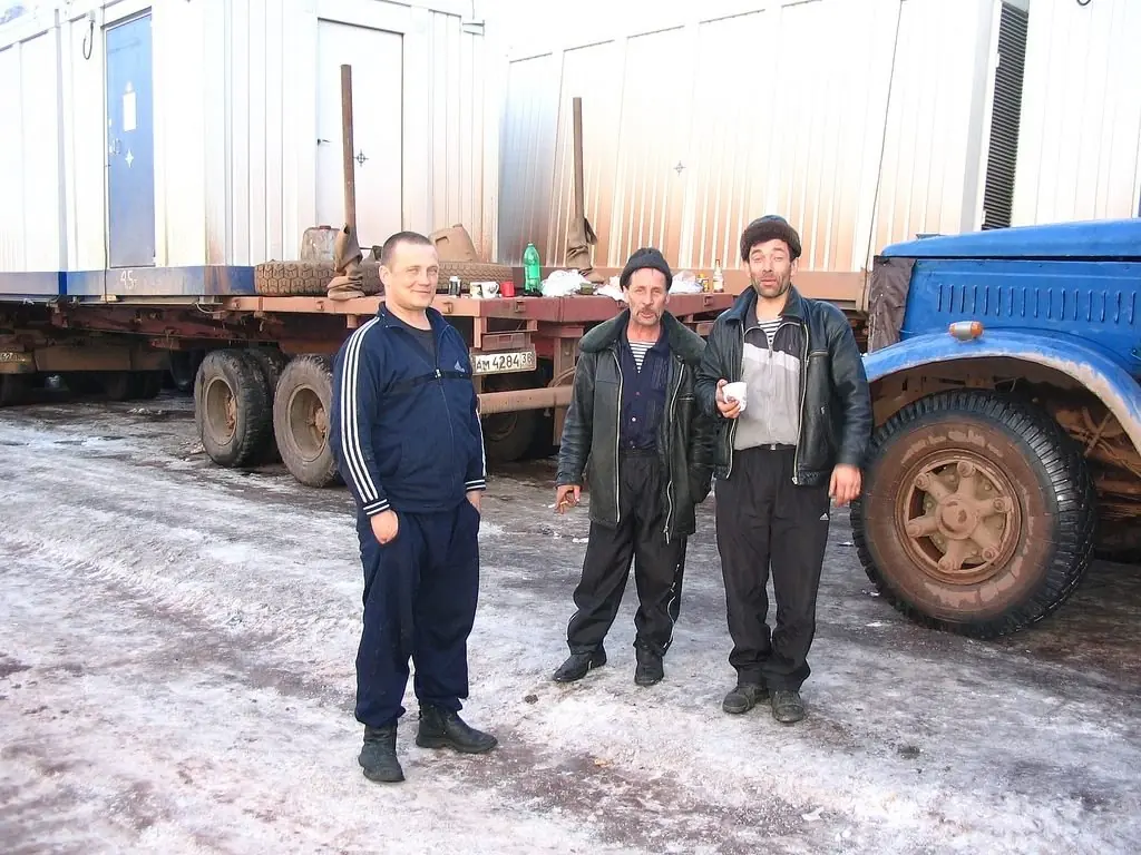 Последний рейс в этом сезоне. Больше десяти машин загружены с блоками связи на трубопровод. Груз тяжелый и дорогой. Фотографирую и снимаю на видео водителей. Короткий перекур, пьют чай. Все пока выглядят хорошо, оживленно переговариваются, шутят.