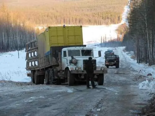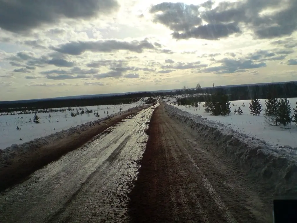 Зимник поделен за разными дорожными организациями. Чистят, следят за дорогой, но к концу февраля, а то и раньше, начинается колея. Под колесами и снегом мари и болота, весенние ямы и колдобины. Греются и лопаются шины. Только собрались отдохнуть — громкий хлопок под кабиной. Муж чертыхается. Но, увы, это было не колесо. Сливает в картонную коробку масло. Масло не растекается, замерзает горкой.