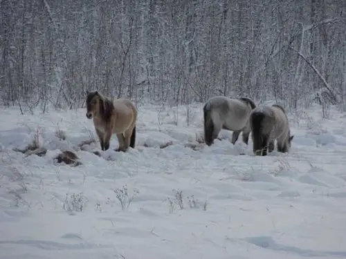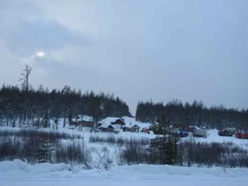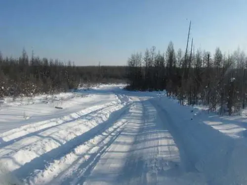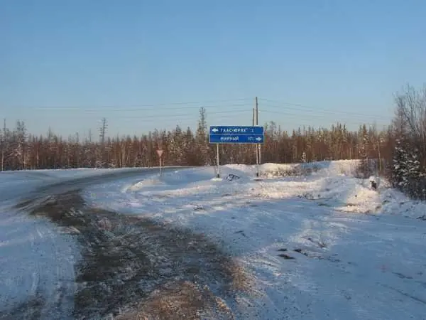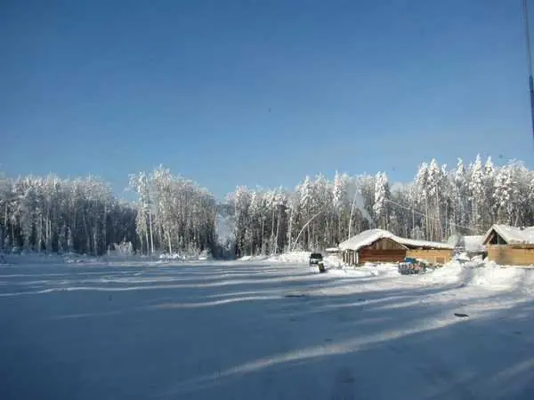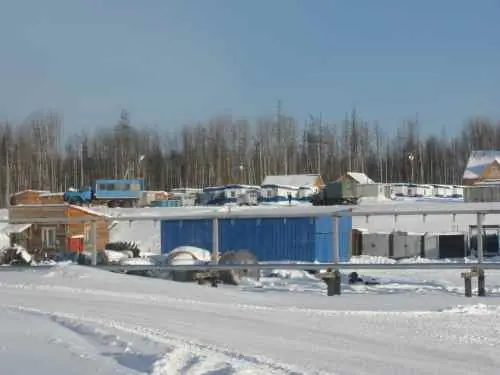 Поселок Таас-Юрях от выхода из зимника в трех километрах. Селу более ста лет, жителей около 500 человек. Нам так и не пришлось заехать в Т.Юрях, хотя желание было. Недавно узнали, что туда завозились на разведение овцебыки и даже получали потомство. Что у них вышло с экспериментом, не знаю. Зато часто видим, как даже в самые сильные мороза недалеко от дороги копытят снег якутские лошади. Местные жители заготавливают и возят дрова. Не так давно провели им газ. Несколько лет назад из-за поломки котельной многих сельчан эвакуировали в город Мирный. Как когда-то жителей Ленска из-за наводнения. Моя знакомая из Ленска рассказывала, когда пришли автобусы с людьми, горожане, встречая их, плакали, обнимали. А у нас, говорит, все слезы были выплаканы. Выходили из автобусов грязные, с посеревшими от усталости и горя лицами. Но когда мороз за пятьдесят заставляет покидать родные, не отапливаемые дома, как в Таас-Юрях, страшно. Зима в этих местах всегда лютая. Заходя на зимник с той стороны, или выходя из зимника, традиционно останавливались на площадке, чтобы перекусить и перевести дух. В морозы уходили отсюда, как можно дальше в более теплое и лесистое место.