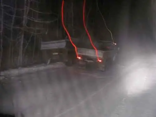Очень неприятная штука, когда полуприцеп заламывает и он пытается вперед машины проскочить.