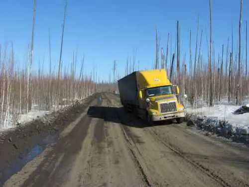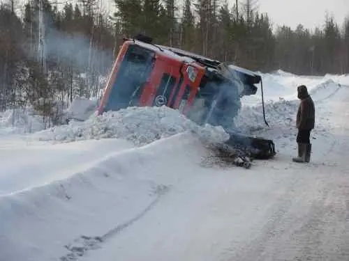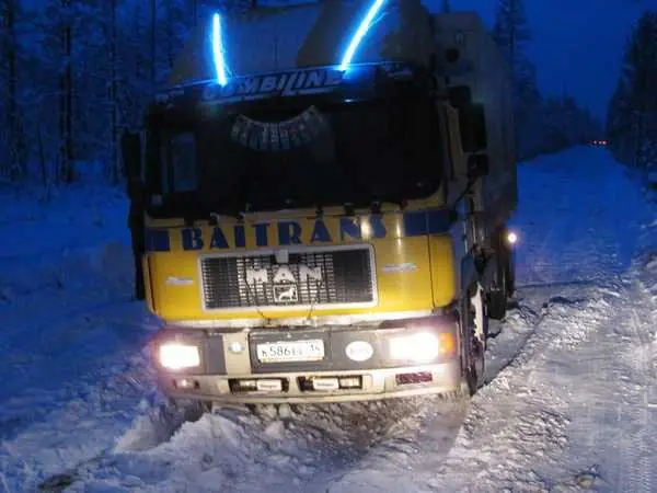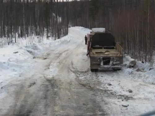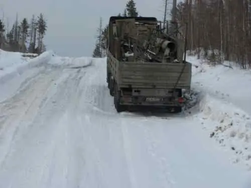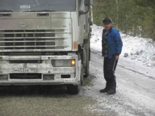 Все, что видела и происходило в дороге, в коротком рассказе не написать. Поэтому постараюсь хотя бы частично передать ту ситуацию, которую переживают и другие дальнобойщики на зимнике и в т.ч. немного охватить периоды своего путешествия. Вообще, должна вам сказать, что дороги зимника интереснее и экстремальнее. У многих в кабинах рация, предупреждают идущих следом о помехах спереди, общаются на ходу. По поведению водителей можно судить, кто бывалый дальнобойщик на зимнике, а кто новичок. Новички со временем заводят знакомых, друзей, а без взаимопомощи далеко не уедешь. Уже не сидят в машинах, если кто-то не взял подъем, Собираясь в дорогу, помните, что вы едете на Север, даже в марте температура может опуститься до сорока и ниже. А машины имеют свойство ломаться, и колеса взрываются. Пусть у вас будет и домкрат, и трос и др. Не прыгайте по ледяной воде в кроссовках, прося водителей: «Дяденька, продайте сапоги». На зимнике наледи и зимой бывают, а весной такая колея, как в песне Высоцкого. А в остальном все прекрасно!